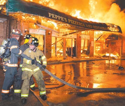es were also threatened by the growing blaze. Starting with a defensive attack on the involved stores, additional companies concentrated on interioroperations on the uninvolved businesses. With the help of fire walls on eitherside, the main body of fire was held to the originally involved pizza and bagel stores. The cause of the fire was underinvestigation.