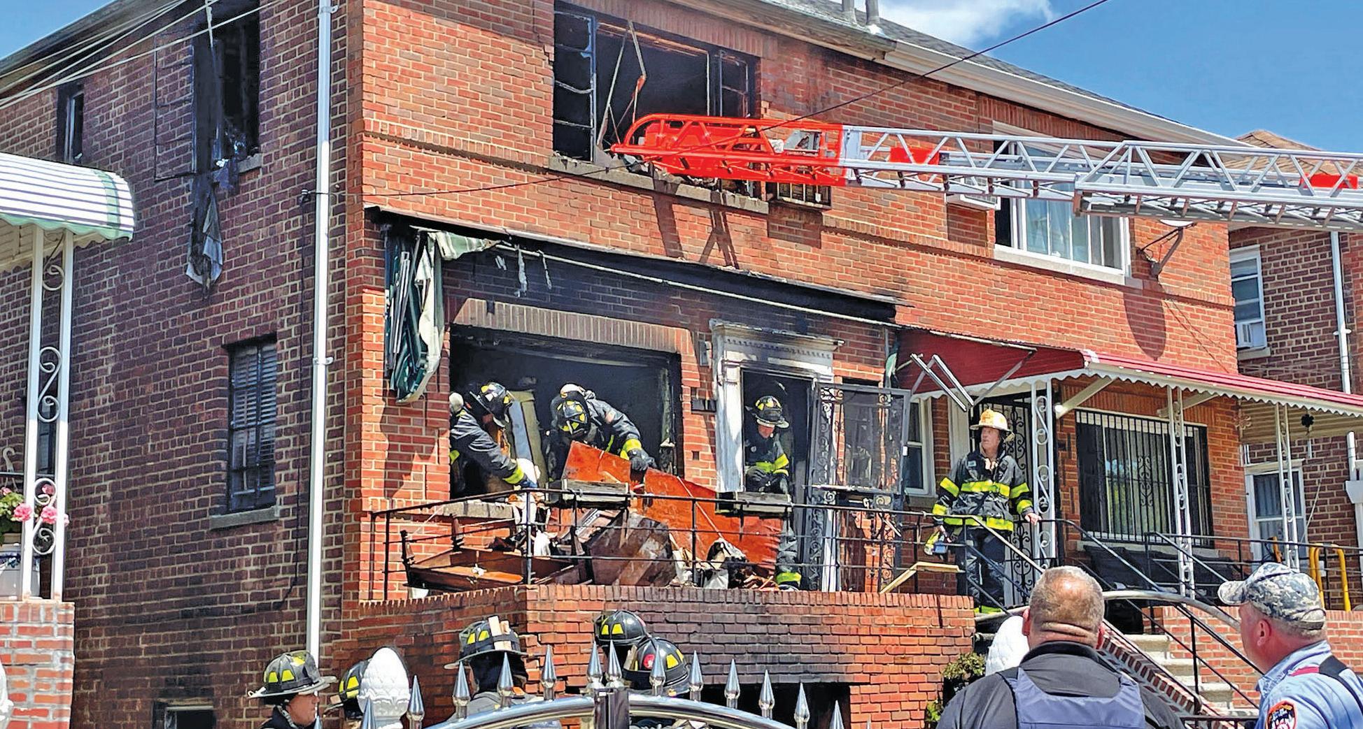 Firefighters fought heavy fire throughout a 2-1/2 story vacant building on Lefferts Boulevard on May 25, 2023. Units were advised to stay out of the X-marked building. Apairof towerladders and three hoselines were used to knock down the fire.