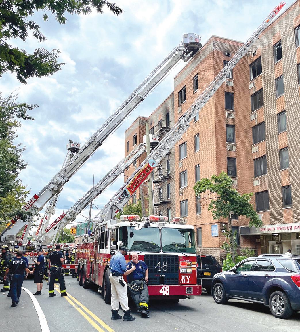 FDNYunits battled a three-alarm blaze in an occupied multiple dwelling on Watson Avenue in the Soundview section of the Bronx on August 8, 2023. The fire was believed to have started on the top