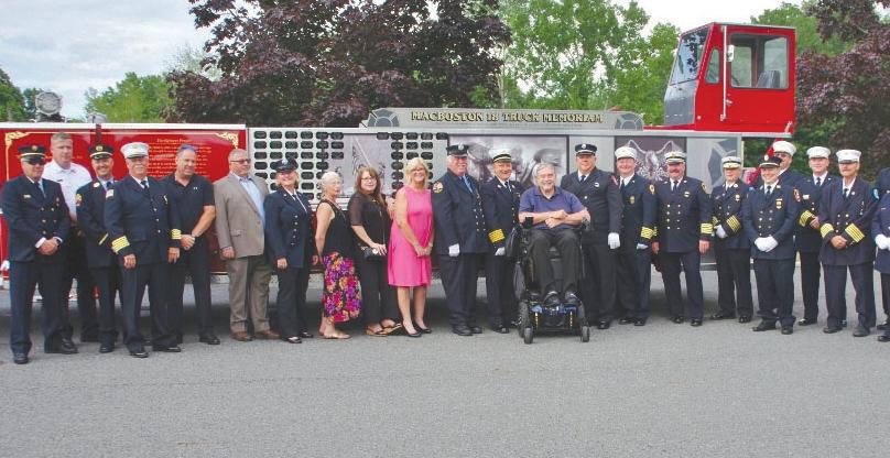 The Athens VolunteerFire Department held a wetdown forits new ETA2-1 pumper-tankeron July 1, 2023. Fire departments from Greene and Columbia counties came to celebrate Athen’s new eight-crew cab RosenbauerCommander2000-gallon PumperTanker. Its otherfeatures include a Knight LED Light Tower, TFT Hurricane Remote Monitor, and 1500-gpm Hale Pump. Garrison Fire and Rescue, a Rosenbauerdealerout of Palenville, worked closely with the Athens Fire Department’s truck committee to design the apparatus. The apparatus was dedicated in the memory of Tim Albright, Sr., who passed away December2022. Albright was instrumental in getting this apparatus forthe Village of Athens. He also actively trained many drivers throughout his 50plus years of service. His family, along with Village of Athens officials, were on hand as fire departments sprayed down the engine as it made a grand entrance into the Athens VolunteerFire Department’s campus.