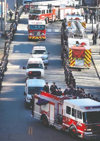 On November19, 2022, Cleveland FirefighterJohnny Tetrick was hit by a reckless driverand killed in the line of duty while re sponding to an MVAon Interstate-90 nearMartin LutherKing Jr. Drive. FirefighterJohnny Tetrick was assigned to Cleveland Fire Station 22, serving the Division of Fire forover27 years. The funeral service was held at Rocket Mortgage Field House. - Photos courtesy of Cleveland Fire Department