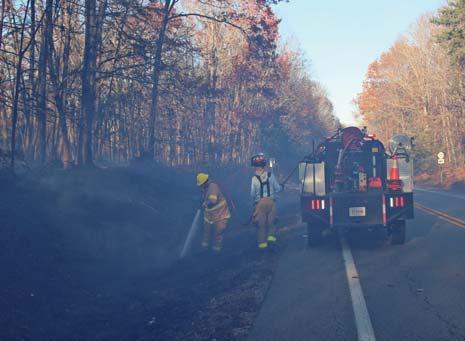 On November 16, 2025, Central Virginia was on a Red Flag fire day due to high winds and dry weather till 1700 hours. Buckingham County received a call at 1305 for a brush fire on Route 15 north of Stage Coach Road. Buckingham dispatched three companies and forestry units and mutual aid from Farmville and Randolph for tankers and brush trucks. Buckingham units covered the north and west sides of the fire and Farmville and Randolph covered the east and south sides to prevent the fire from jumping Route 45. State Forestry which was on duty due to the winds used a dozer to cut the fire line on the south side. The fire was brought under control and contained in about 30 minutes and burned about three acres of woods. - Fire News photo by Dan Pempel
