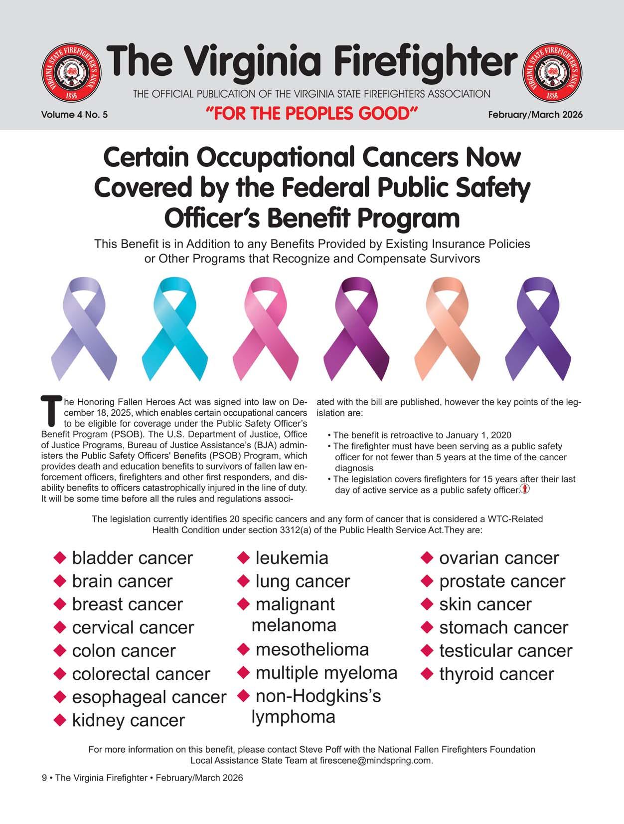 The Honoring Our Fallen Heroes Act, which was included as part of the Fiscal Year 2026 National Defense Authorization Act, expands the Public Safety Officers’ Benefits (PSOB) program to include certain occupational cancers. The PSOB program provides one-time financial payments to the families of firefighters, law enforcement officers, and other first responders who have died or become permanently disabled in the line of duty, as well as educational benefits to the spouses and children of fallen officers.