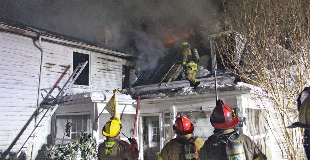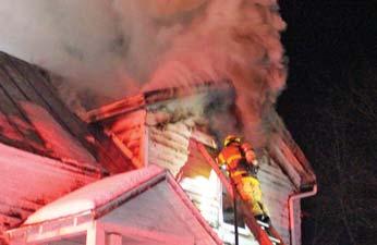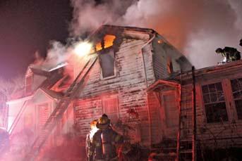 in the cockloft. An order was to back out was given and the fire was attacked with three lines to the second floor, knocking down the fire. Firefighters re-entered the second floor to pull the ceilings and walls and extinguish the fire in the cockloft. They were on site till about 0015 in below freezing temperatures.
