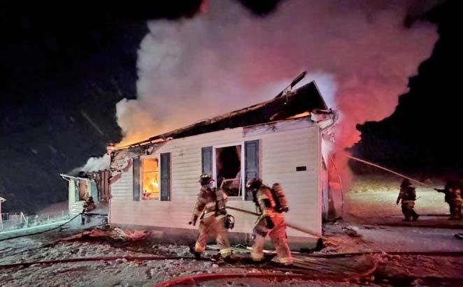 On January 30, 2026, the Galax Fire Department responded for a structure fire on the 2500 block of Pipers Gap Road. First arriving units found a well involved residential structure fire. Two occupants were outside of the residence, alerted by a neighbor and a passing Virginia Department of Transportation plow driver. E2 pulled 150-feet of 2-1/2 inch hose with a gated Y (wye) as well as two preconnects up through the frozen yard, then began the fire attack. The driveway was steep and inaccessible for apparatus. E3 utilized a neighbor’s yard to assist. The roof collapsed with members underneath causing a rapid evacuation. Sadly, the home was a total loss. The American Red Cross was assisting the family of five. Thanks to Hillsville Fire Department, Pipers Gap Rescue Squad, Inc. and Carroll County Sherriff’s Office for their assistance.