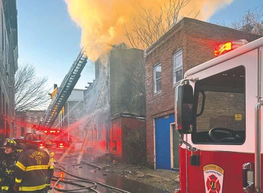 Baltimore City firefighters battled a fire in a vacant end-of-thegroup row frame on Division Street on Friday morning December 1, 2023. Units were met by heavy fire on the first flooron arrival.