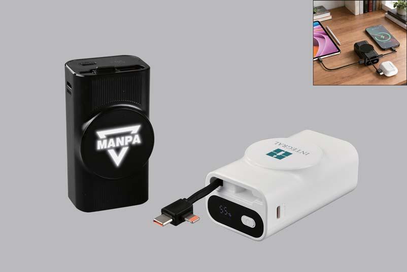 Type-C, USB-A, & built-in type-C/Lightning to charge four devices at the same time