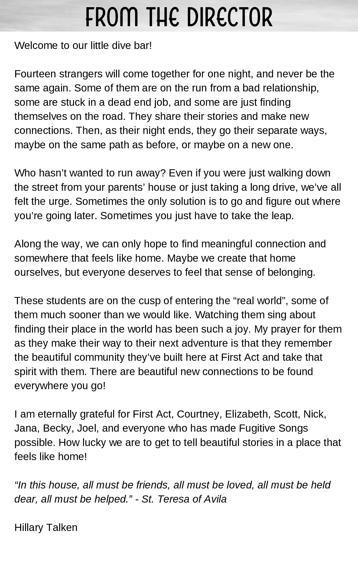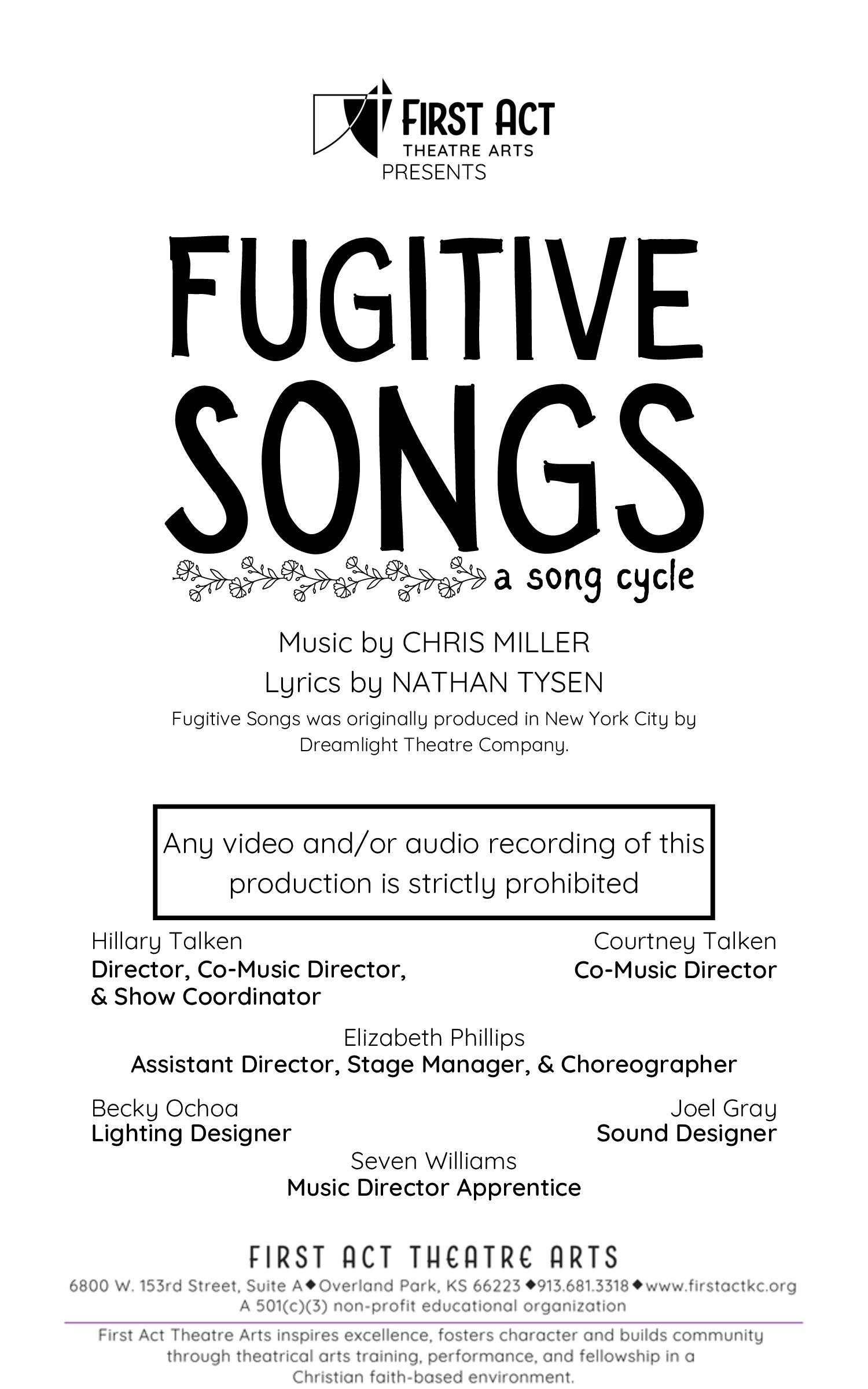 Fugitive Songs presented by First Act Theatre Arts by First Act Theatre Arts - Issuu