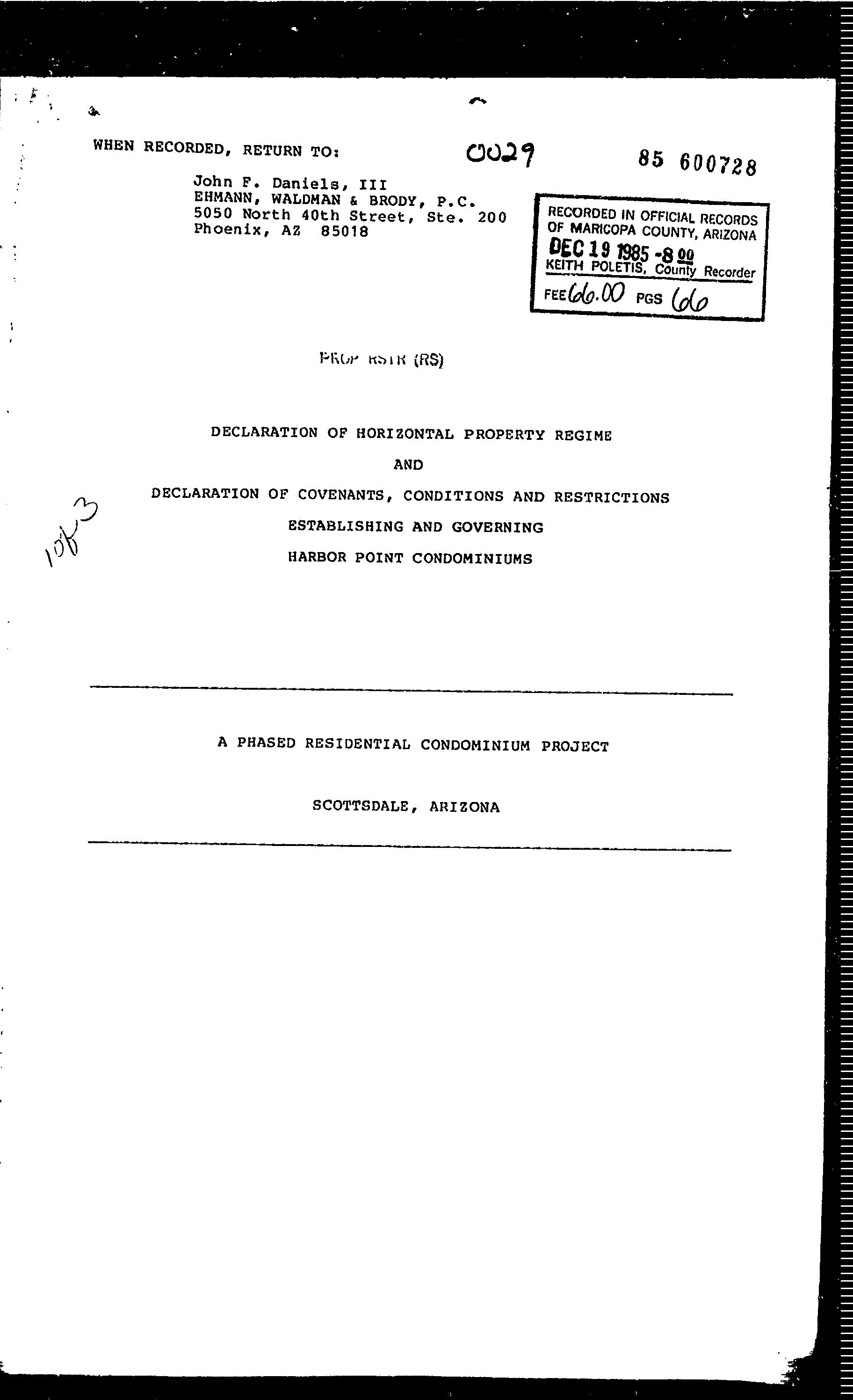MARICOPA, AZ Document:RES 1985.600728 Page:1 of 66 Printed on:9/7/2023 5:09 PM Branch :FC0 User :JSTI