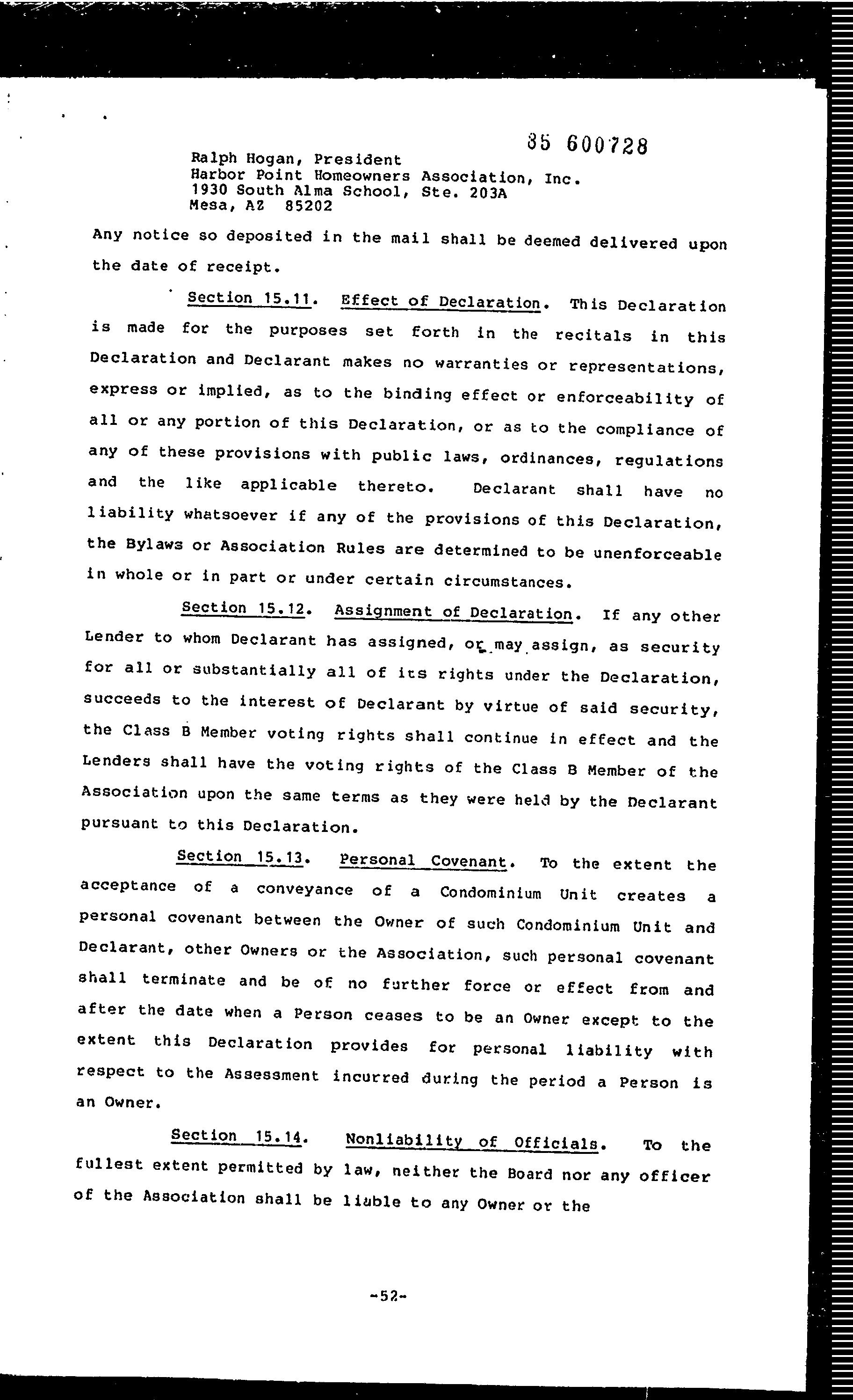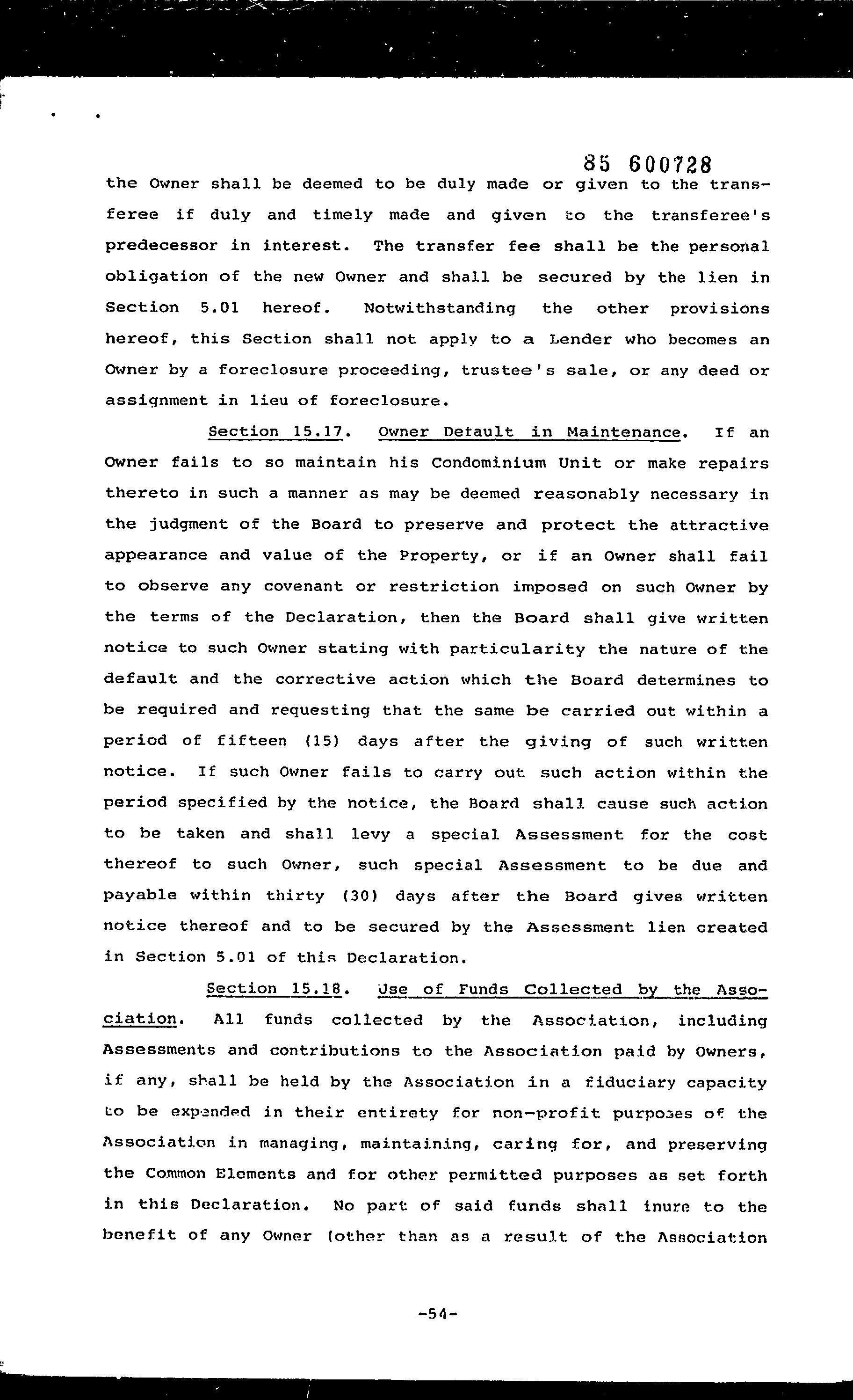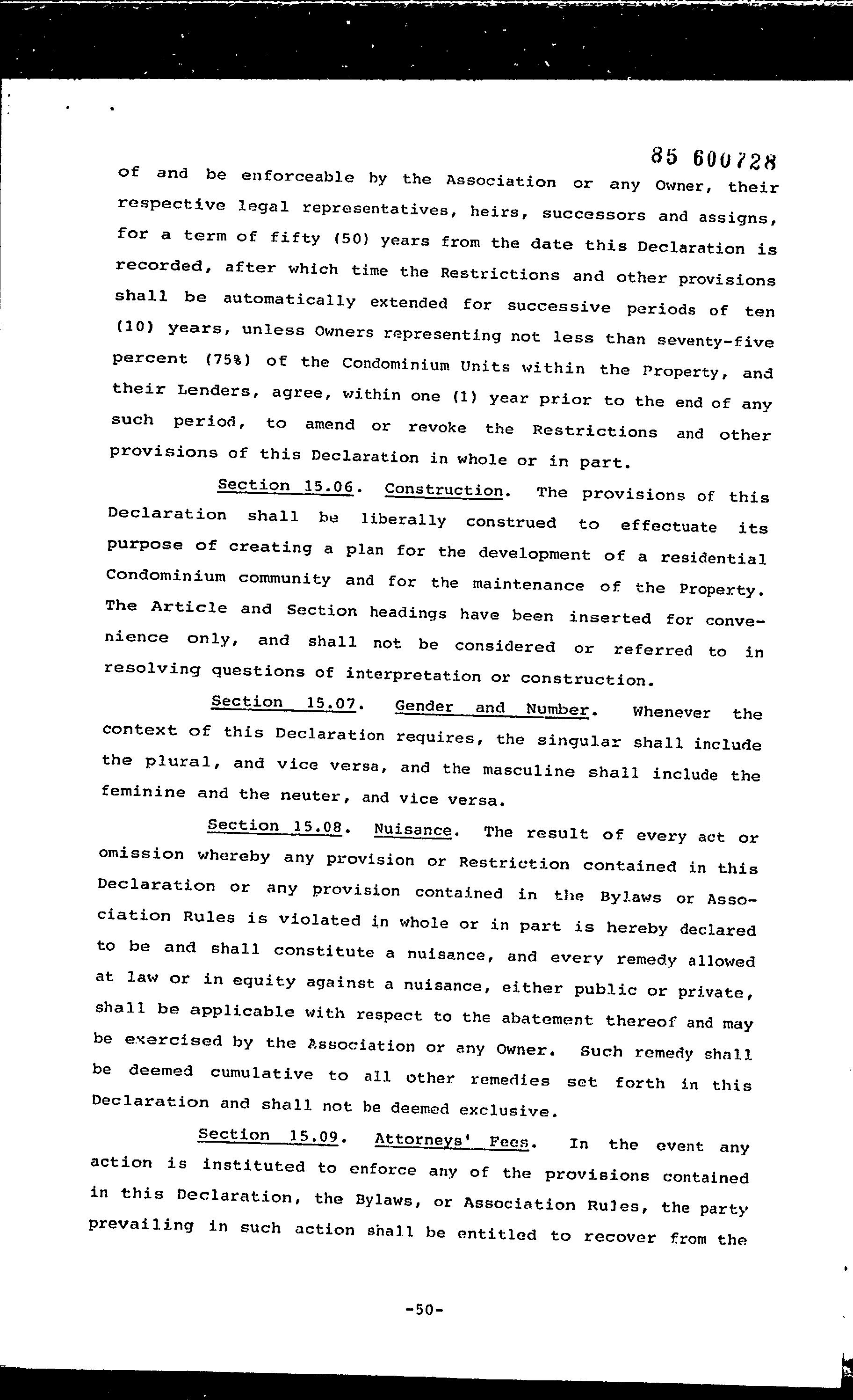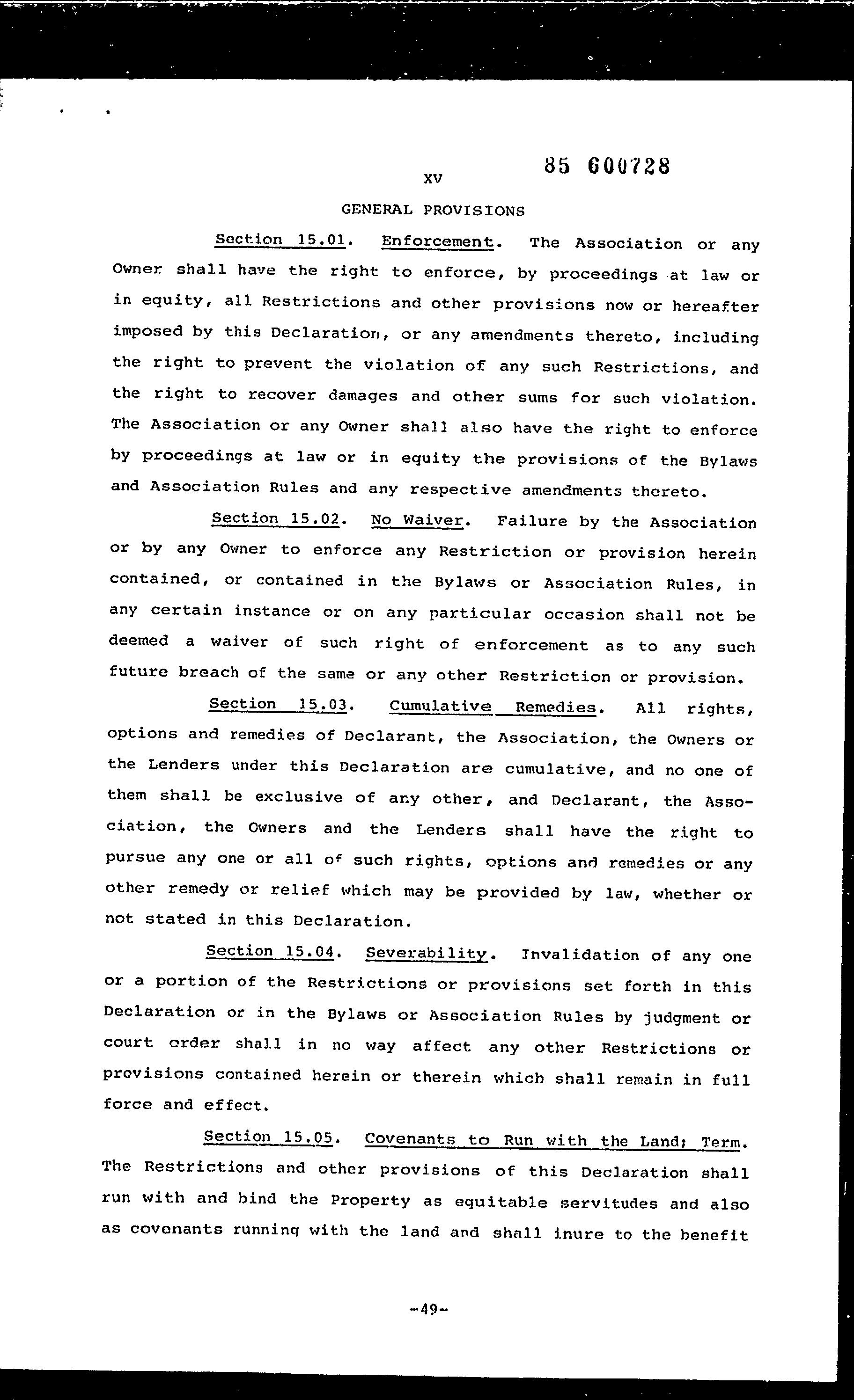 MARICOPA, AZ Document:RES 1985.600728 Page:15 of 66 Printed on:9/7/2023 5:09 PM Branch :FC0 User :JSTI