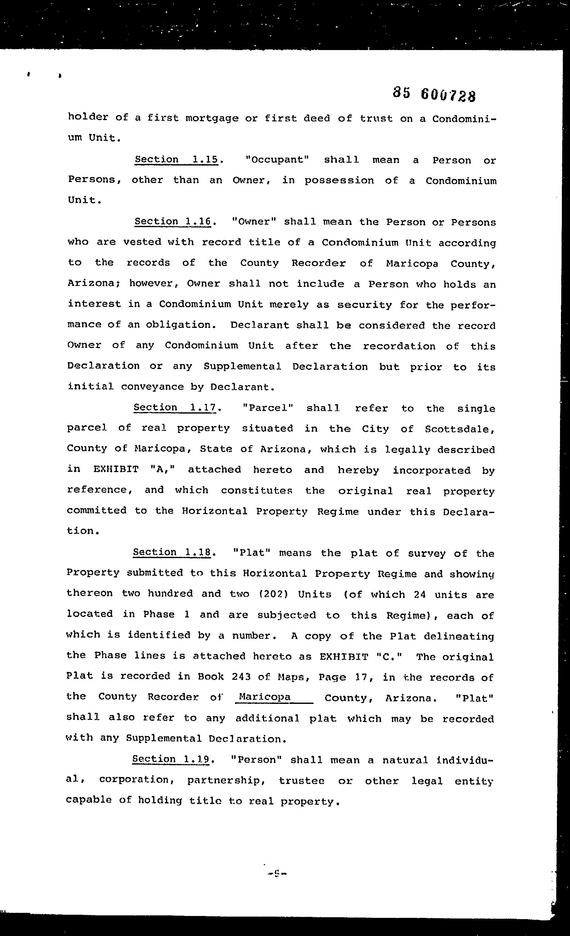 MARICOPA, AZ Document:RES 1985.600728 Page:5 of 66 Printed on:9/7/2023 5:09 PM Branch :FC0 User :JSTI