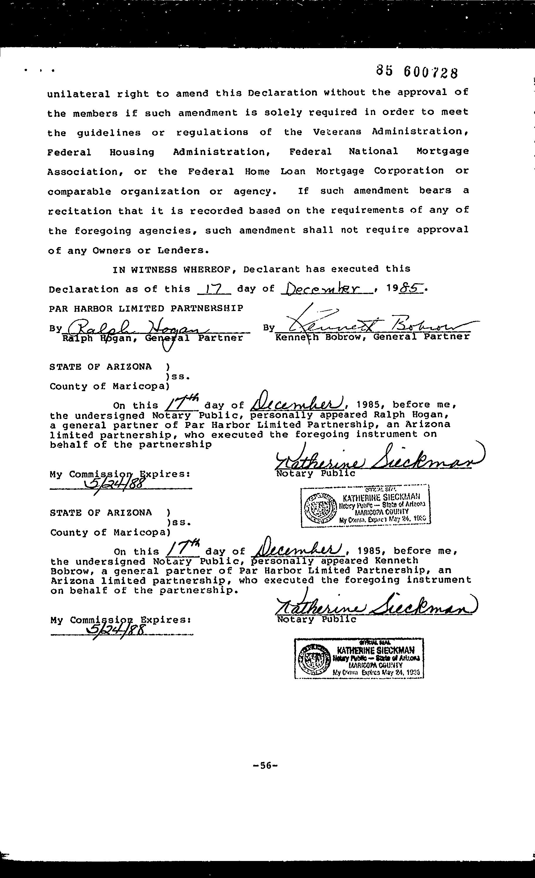 MARICOPA, AZ Document:RES 1985.600728 Page:56 of 66 Printed on:9/7/2023 5:09 PM Branch :FC0 User :JSTI