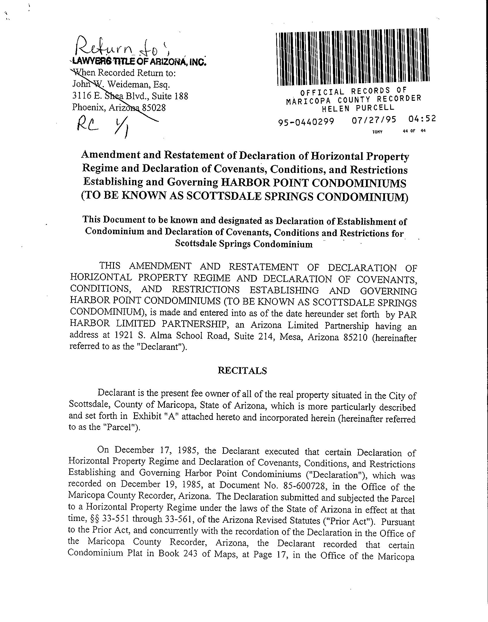 MARICOPA, AZ Document:RES 1995.440299 Page:1 of 47 Printed on:9/7/2023 5:09 PM Branch :FC0 User :JSTI