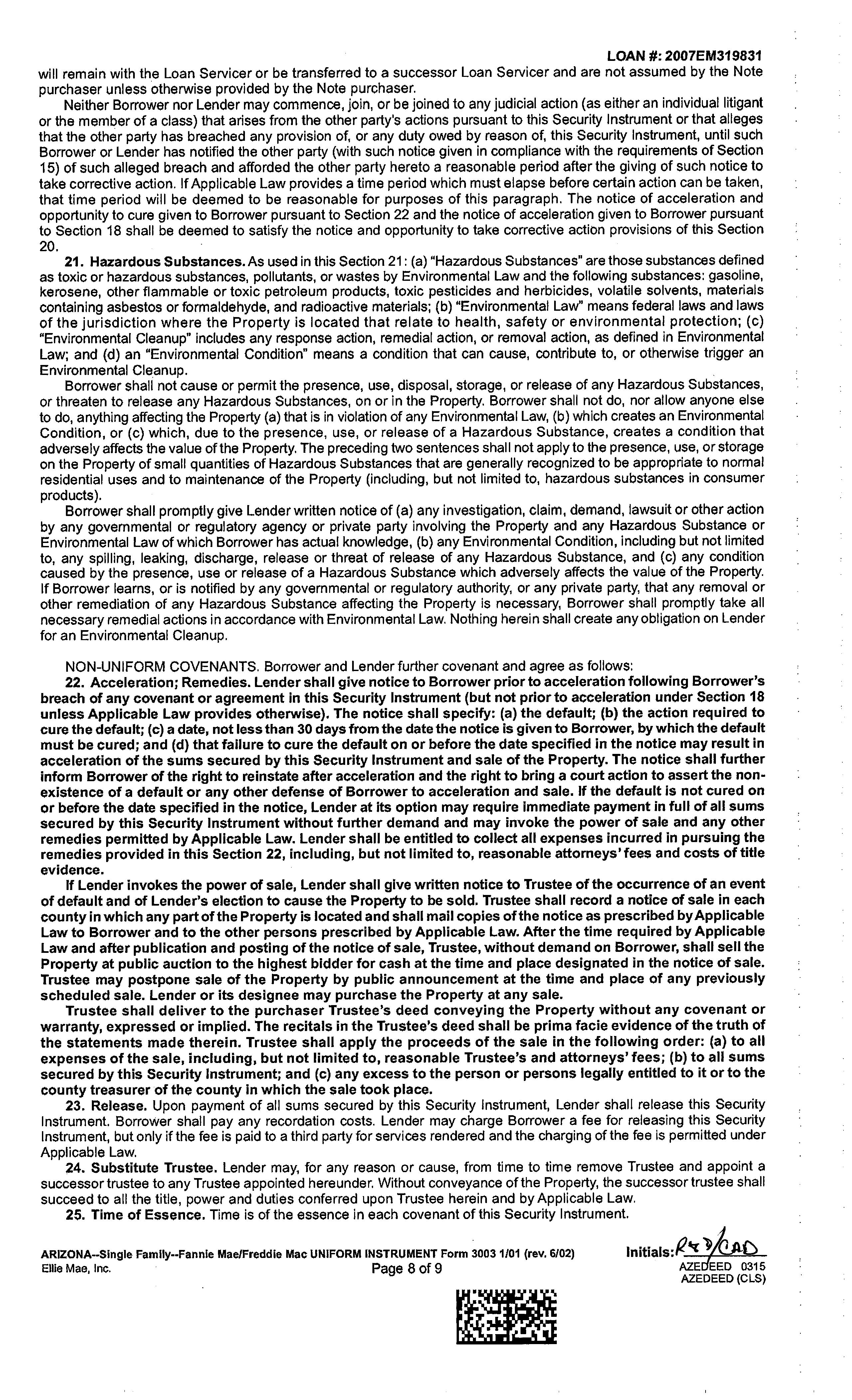 Prior 1st Mtg Rate/Type : $6.50 / Adjustable Int Rate Loan