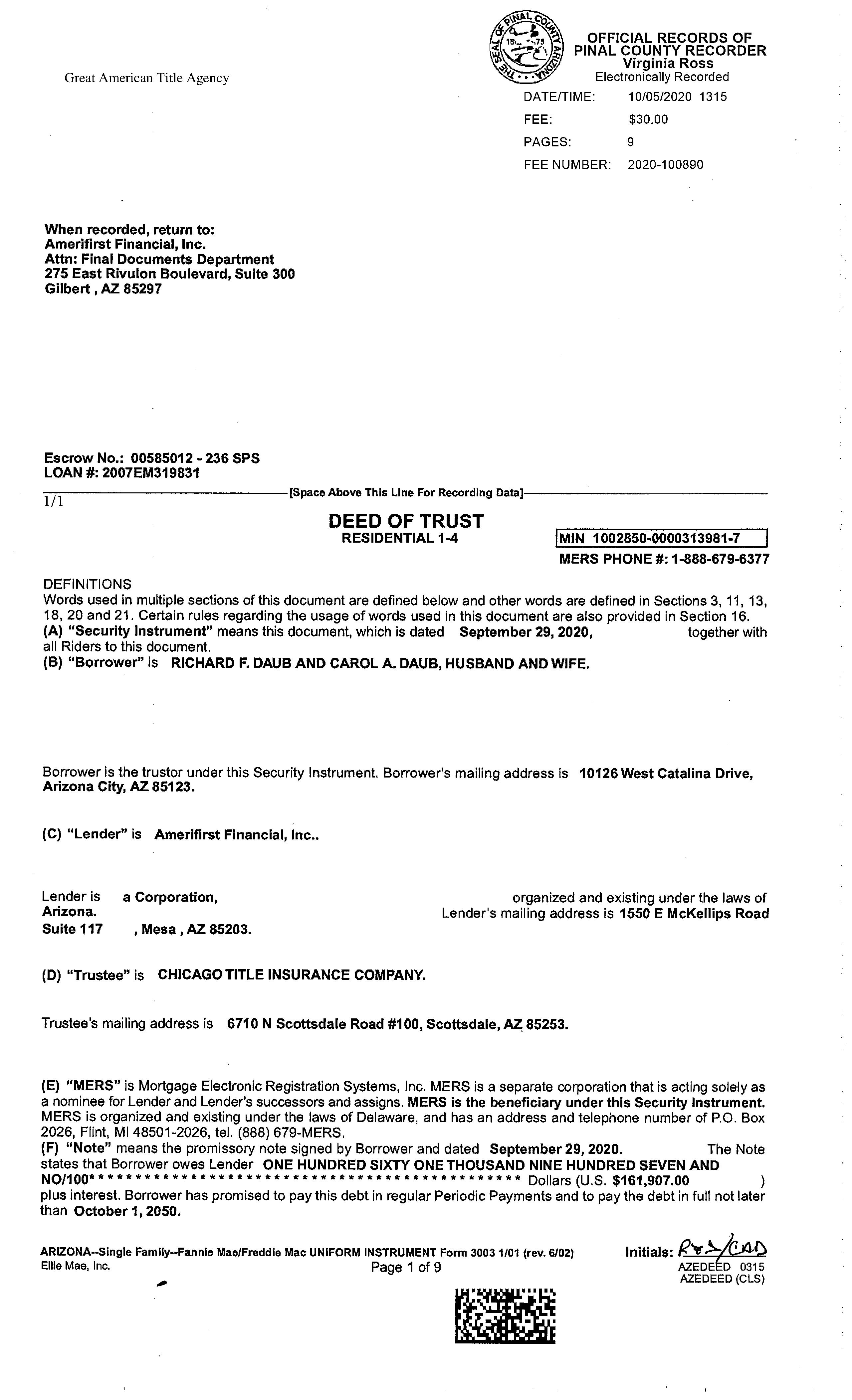 Subject Property : 10126 W Catalina Dr Arizona City AZ 85123
