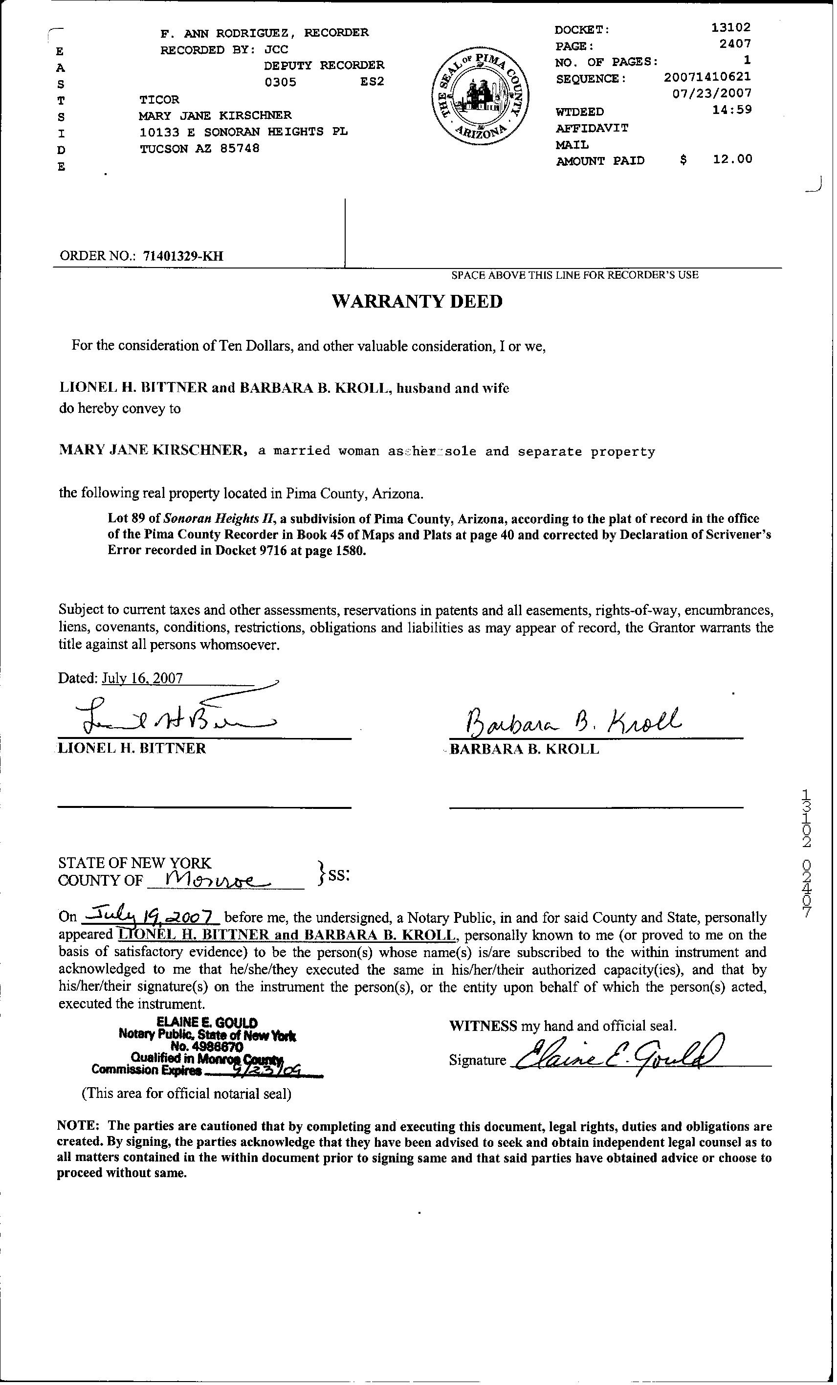 Seller Name : Kroll Lionel H & Barbara B