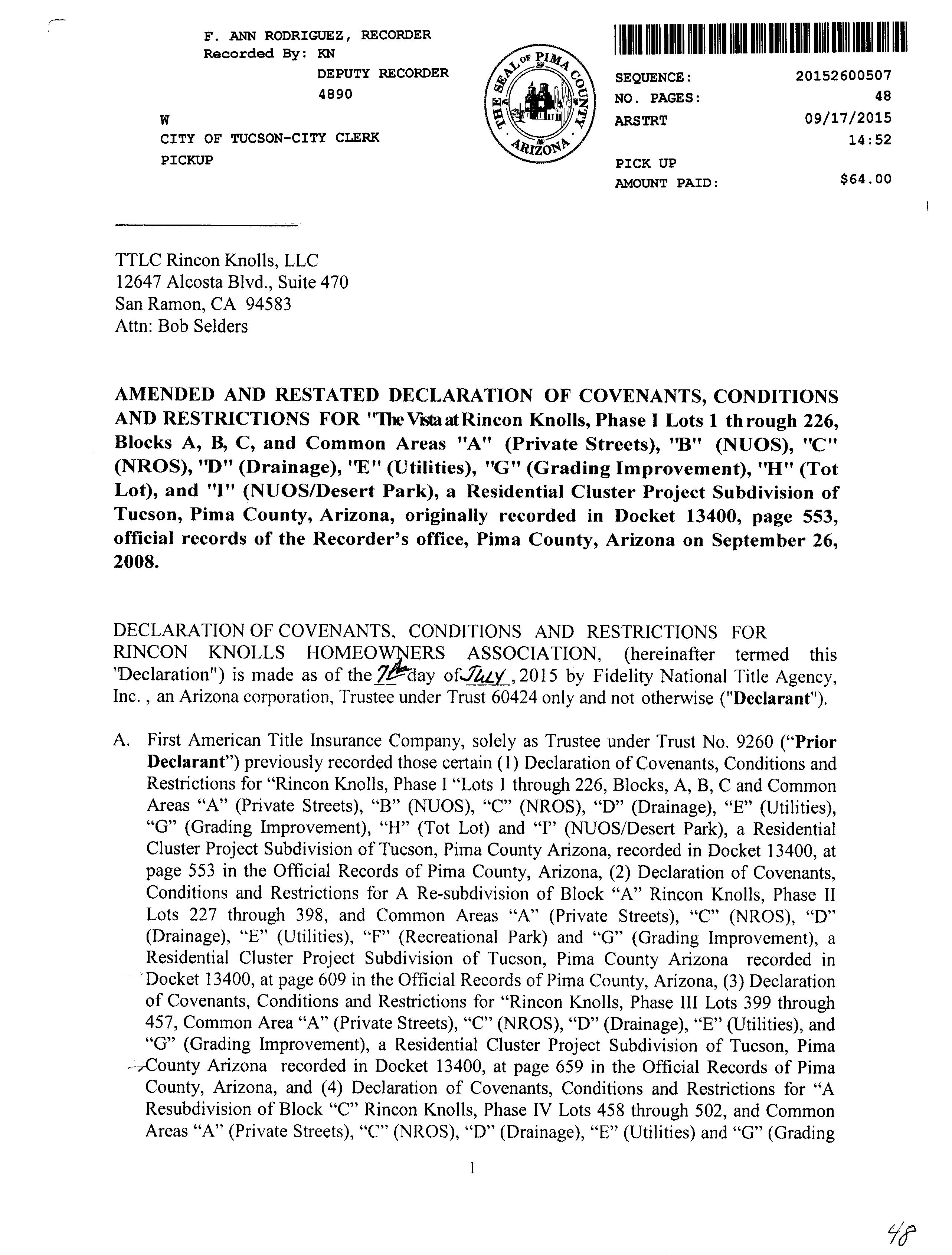 Legal Description : The Vistas At Rincon Knolls Lot 31 Sq20152600506