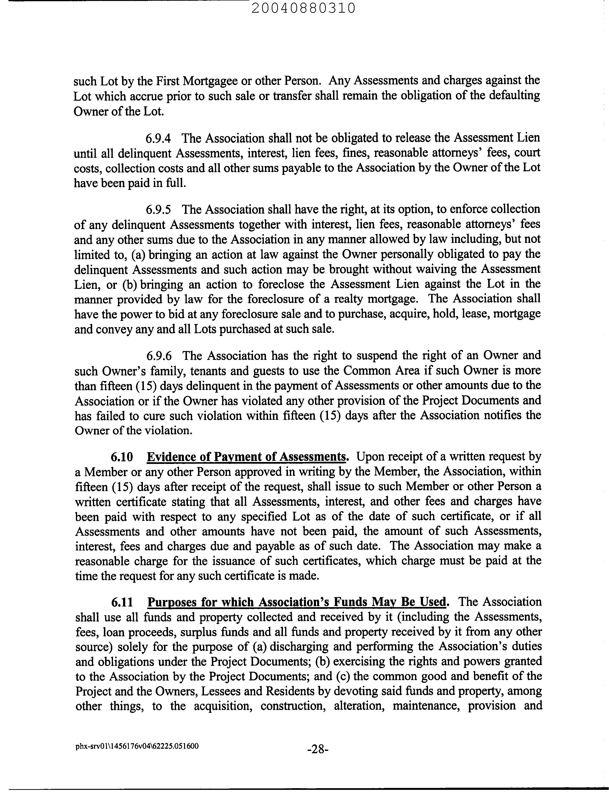 MARICOPA, AZ Document:RES 2004.880310 Page:6 of 54 Printed on:1/30/2023 9:59 AM Branch :FC0 User :JSTI