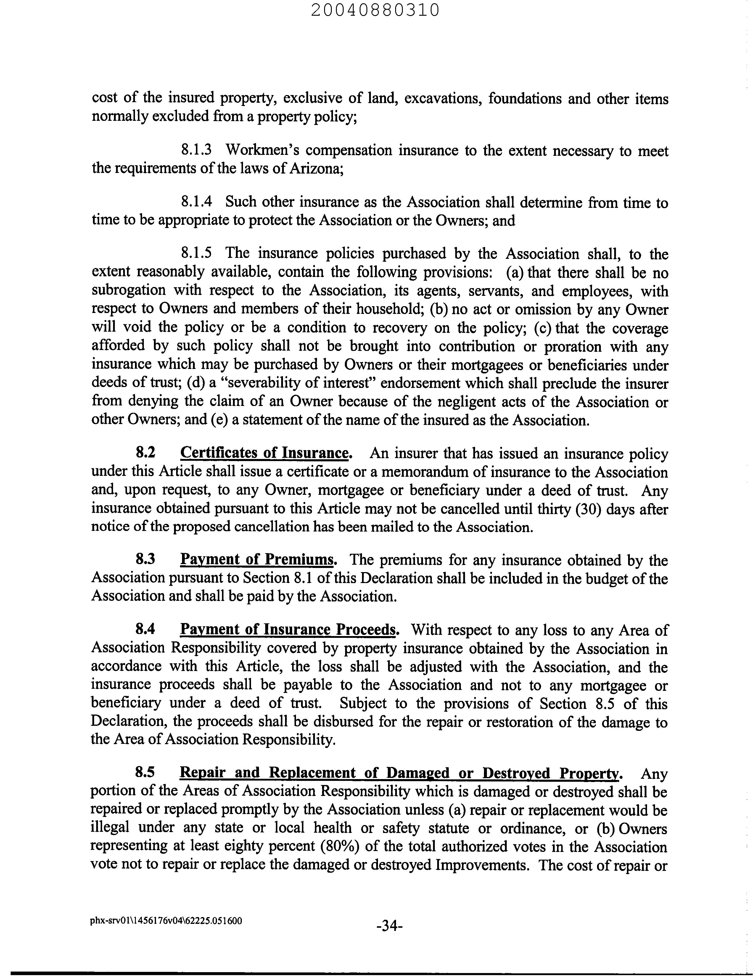 MARICOPA, AZ Document:RES 2004.880310 Page:8 of 54 Printed on:1/30/2023 9:59 AM Branch :FC0 User :JSTI