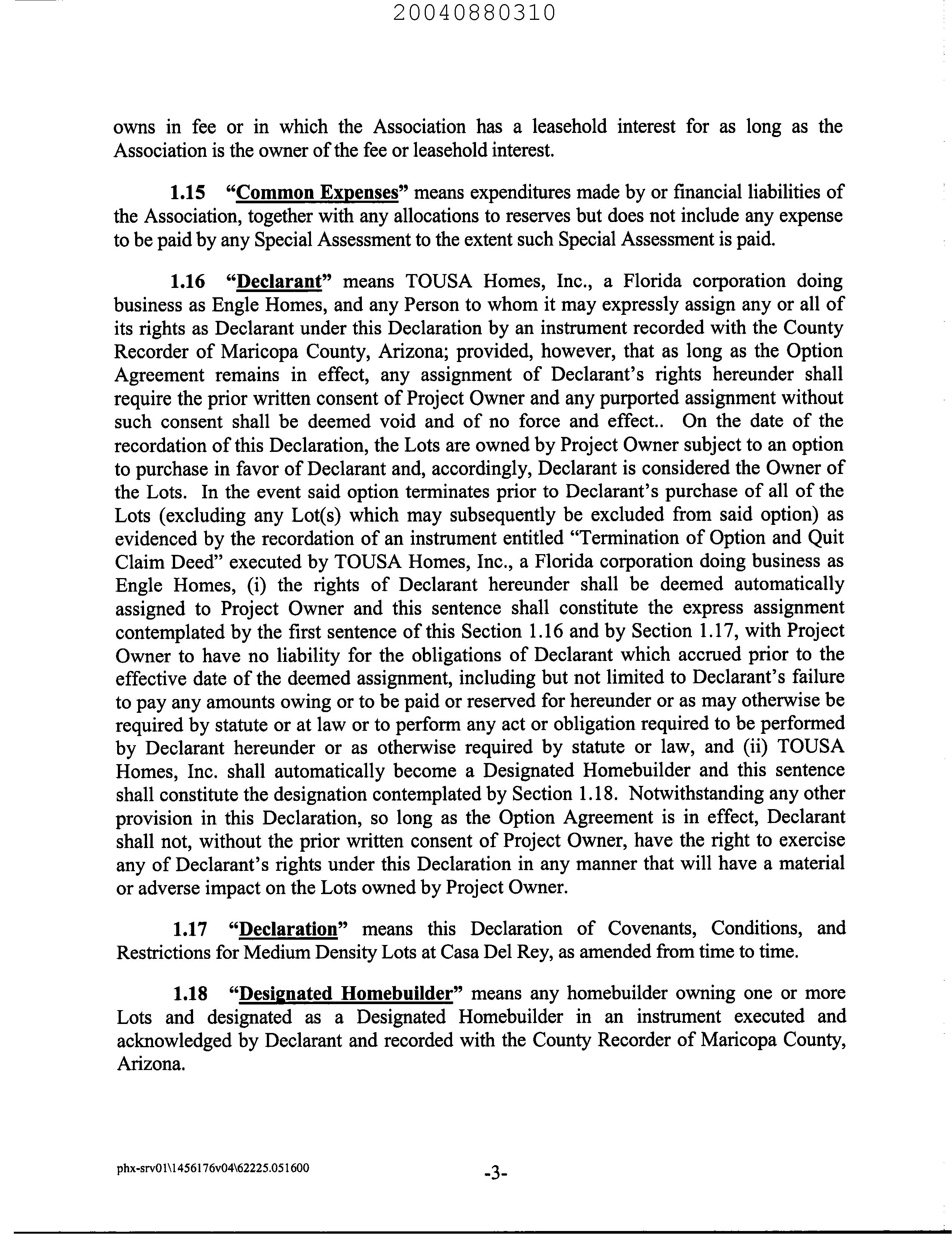 MARICOPA, AZ Document:RES 2004.880310 Page:3 of 54 Printed on:1/30/2023 9:59 AM Branch :FC0 User :JSTI