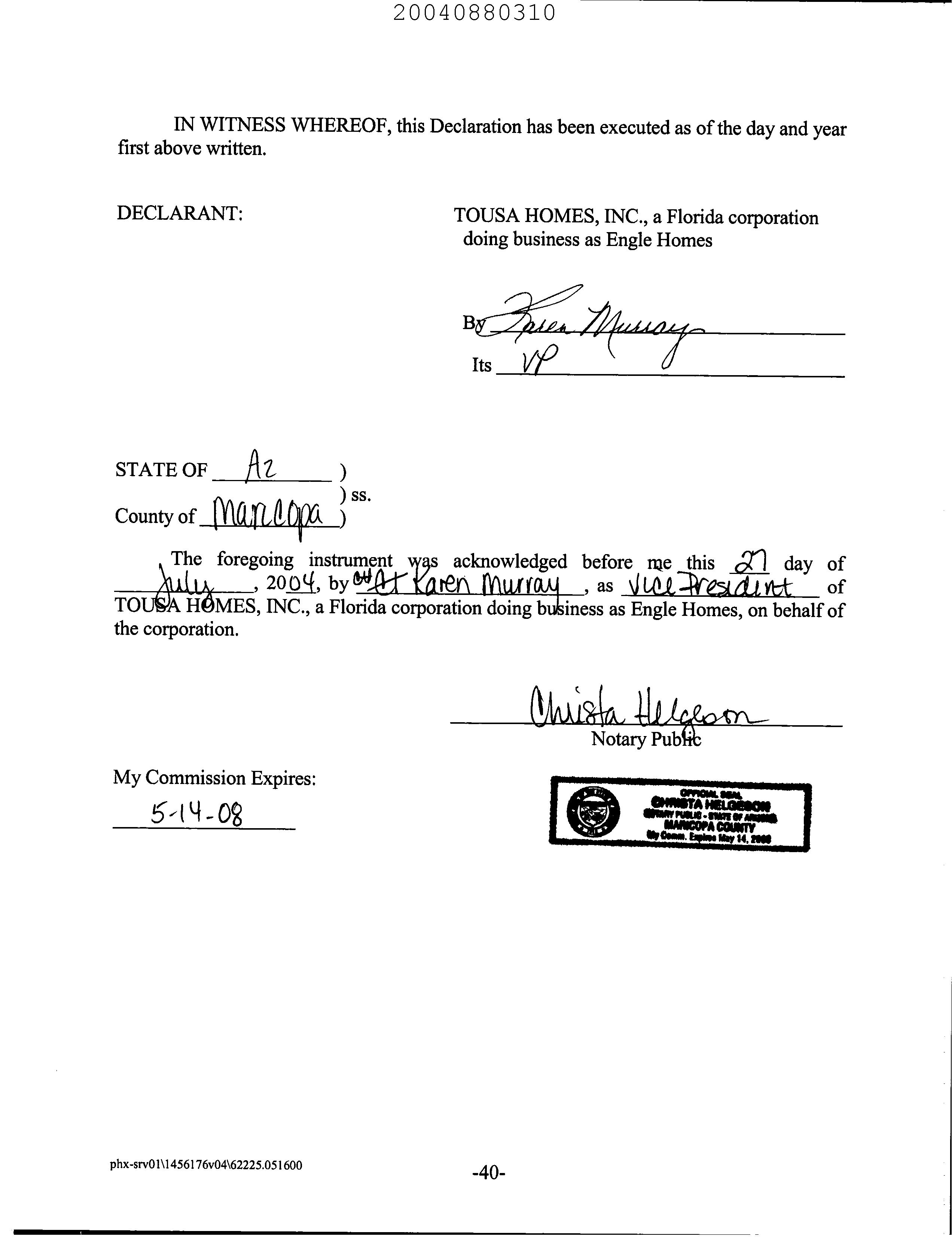 MARICOPA, AZ Document:RES 2004.880310 Page:40 of 54 Printed on:1/30/2023 9:59 AM Branch :FC0 User :JSTI