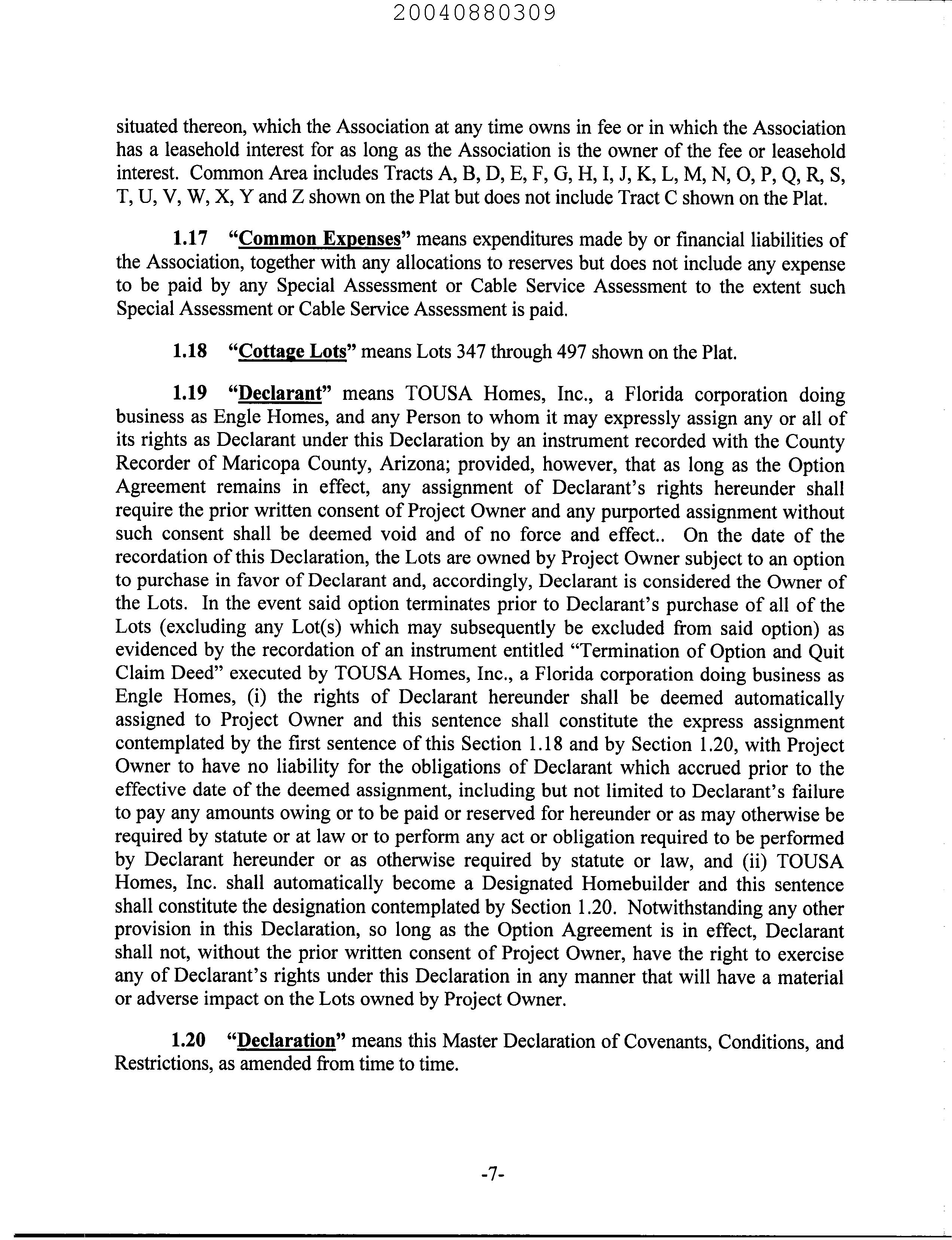 MARICOPA, AZ Document:RES 2004.880309 Page:7 of 47 Printed on:1/30/2023 9:59 AM Branch :FC0 User :JSTI