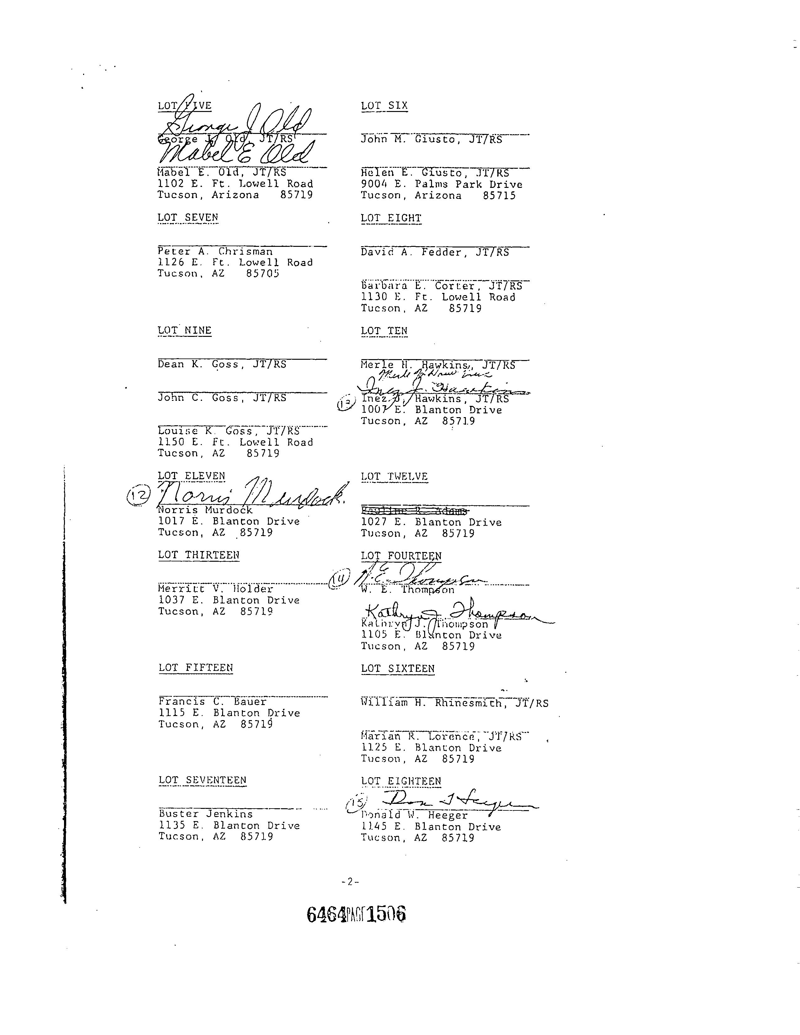 Mailing Address : 1037 E Blanton Dr, Tucson AZ 85719-2613 C037