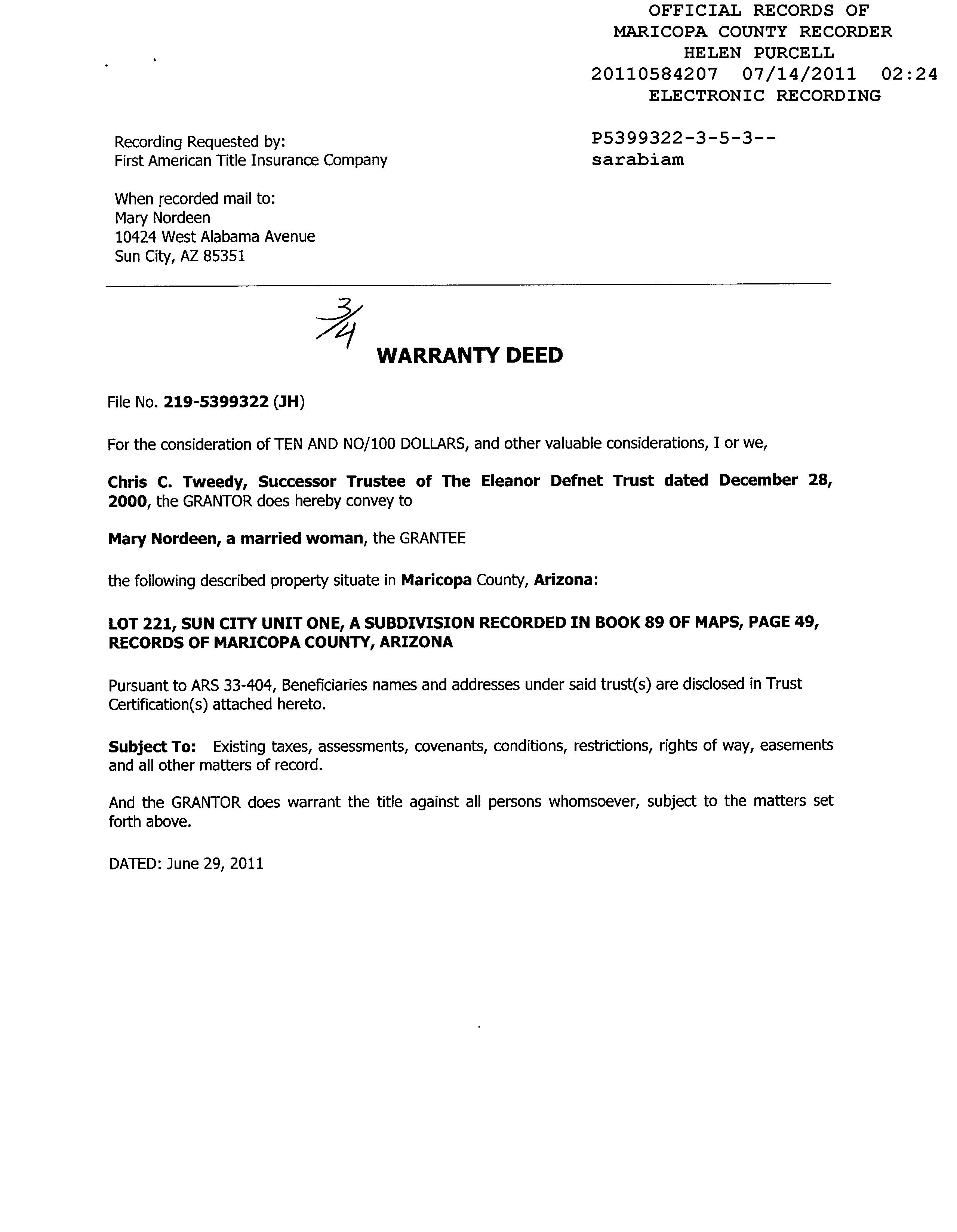 Recording/Sale Date : 07/14/2011 / 06/29/2011