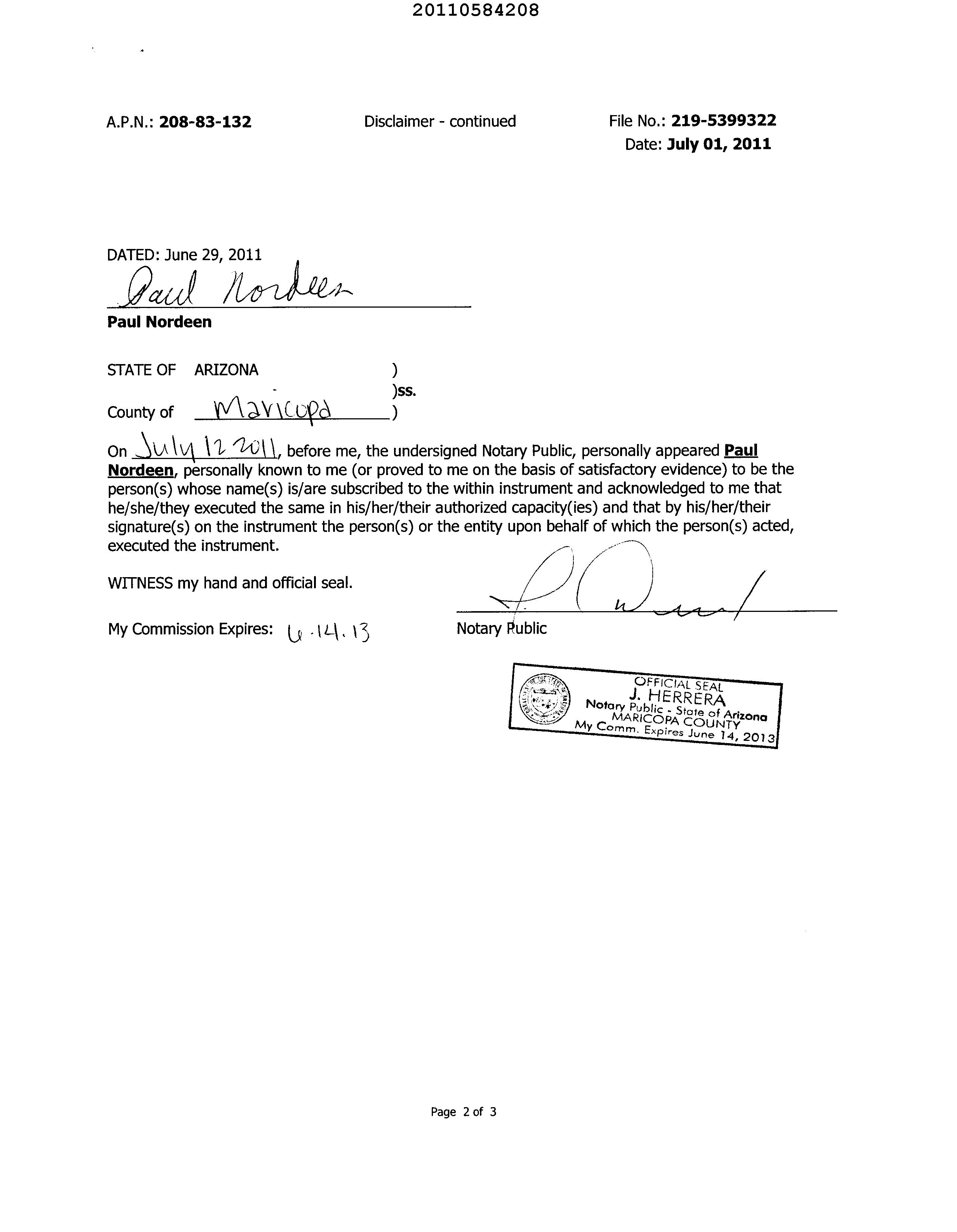 Recording/Sale Date : 07/14/2011 / 06/29/2011