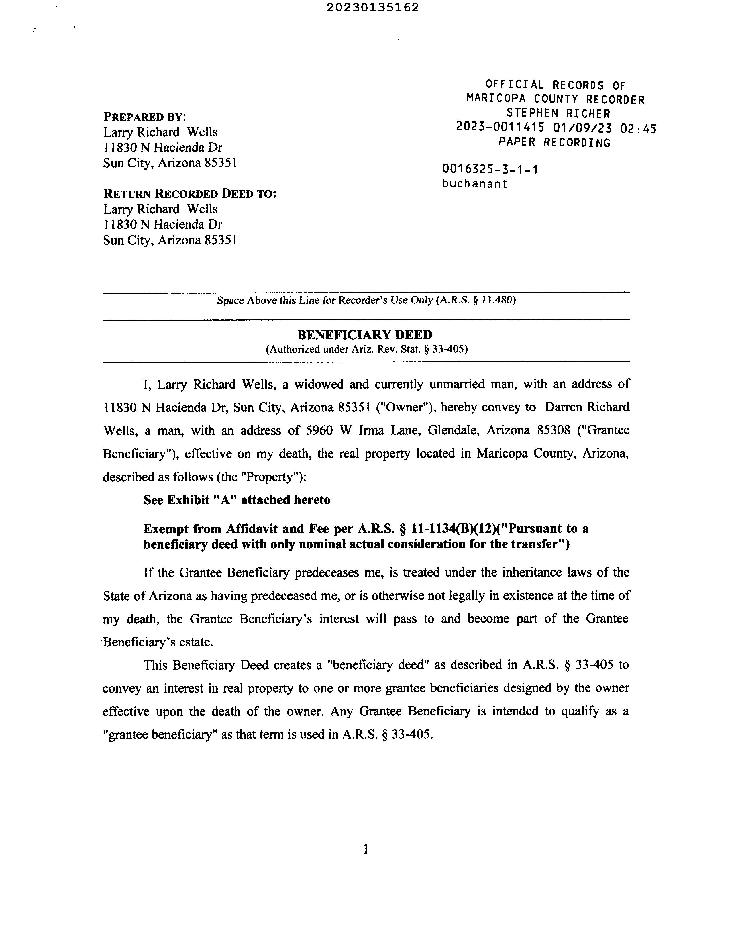 Owner Name : Rmw Rentals Llc Subdivision : Sun City 1 Lt 437-673 Tr B, C & E