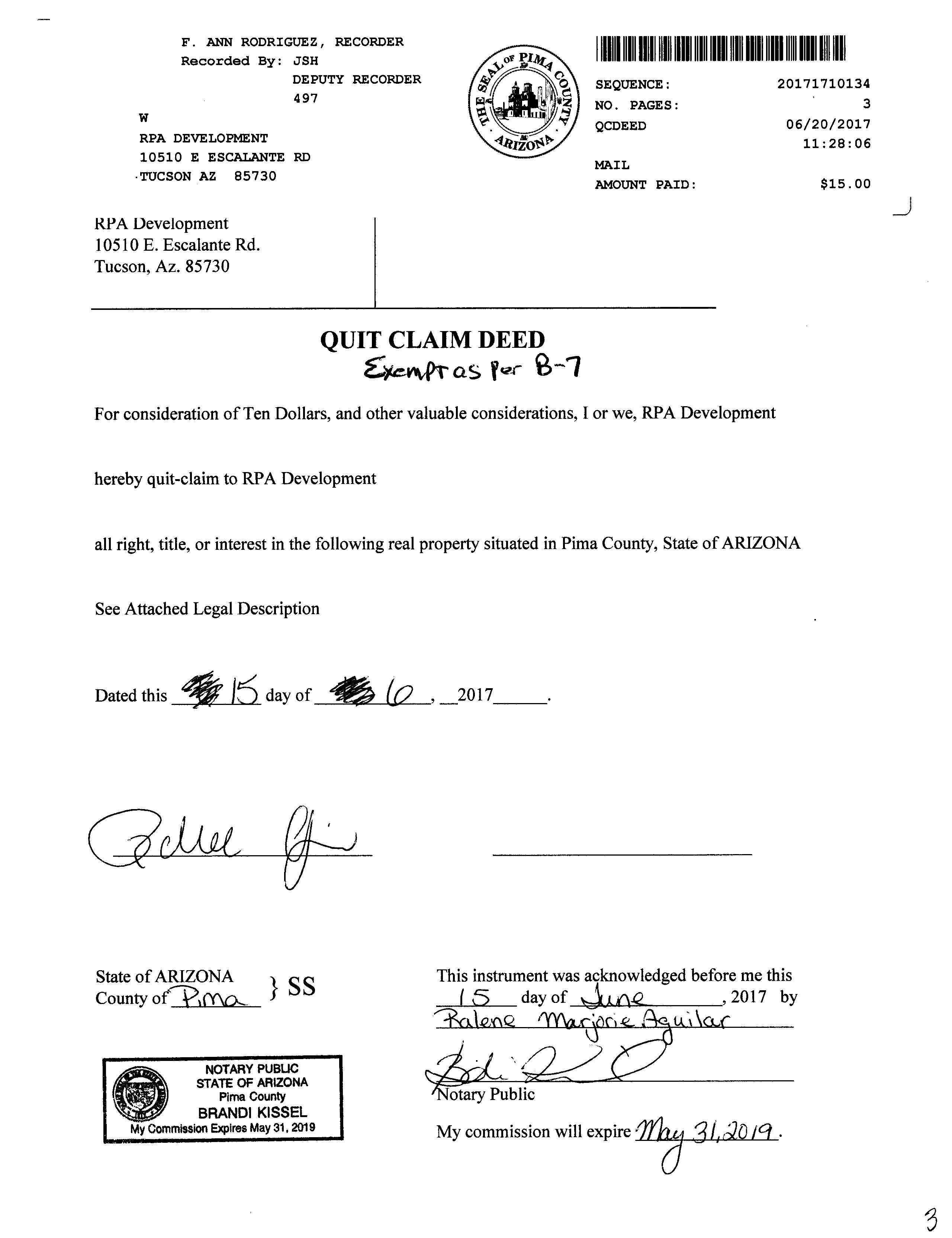 Subject Property : 10530 E Escalante Rd Tucson AZ 85730