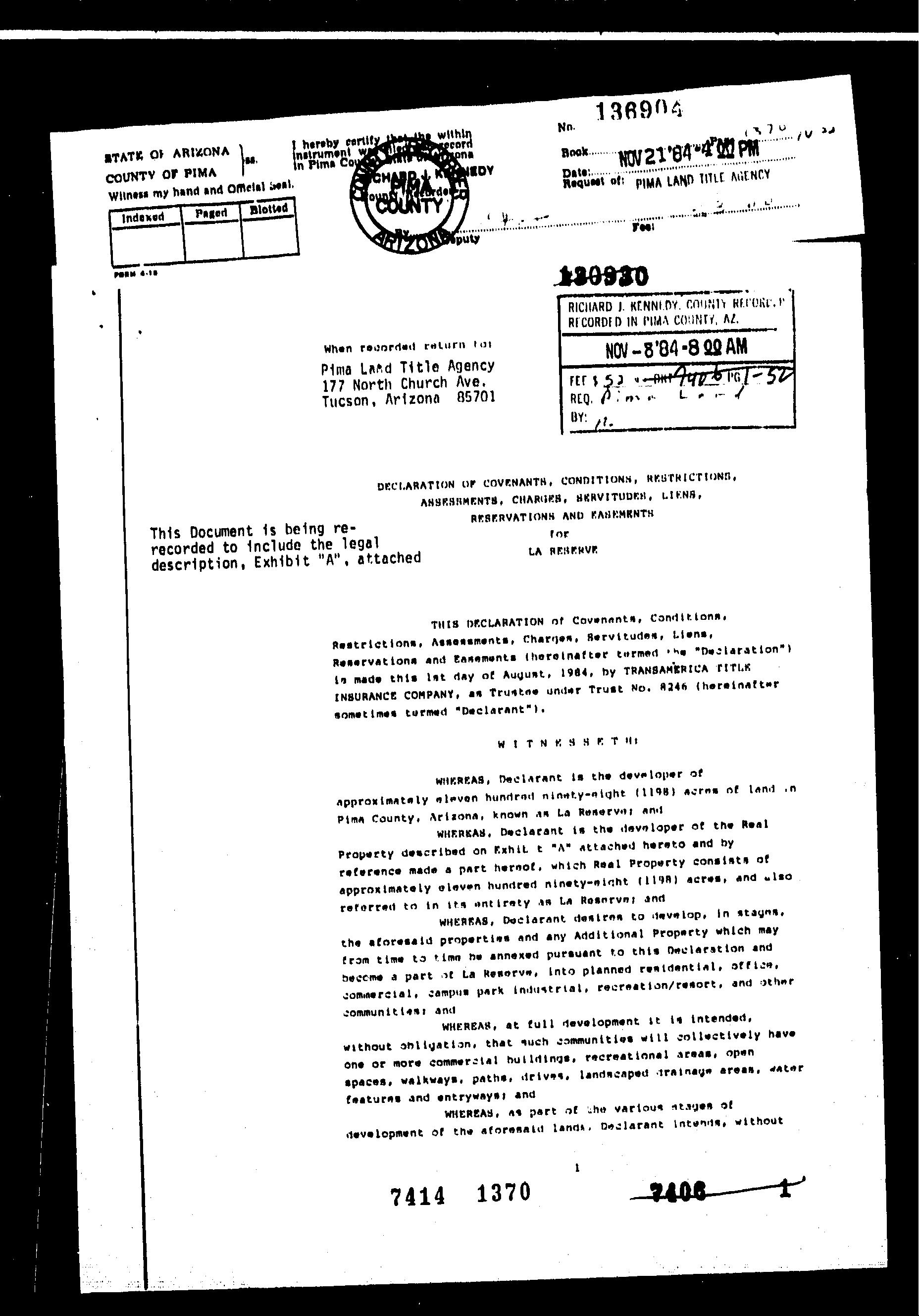 Mailing Address : 9711 N Cliff View Pl, Tucson AZ 85704-7665 C041
