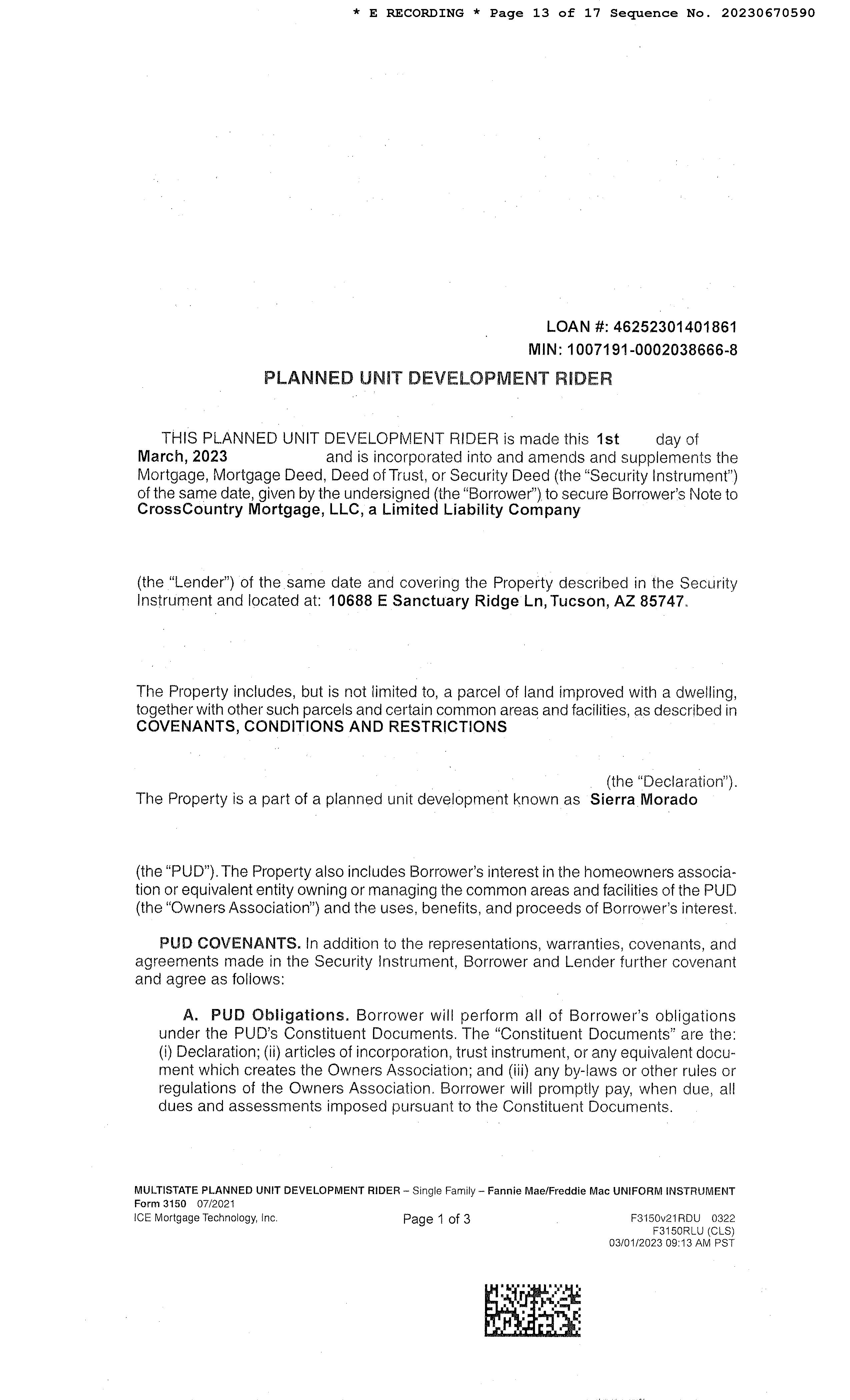 Subject Property : 10688 E Sanctuary Ridge Ln Tucson AZ 85747