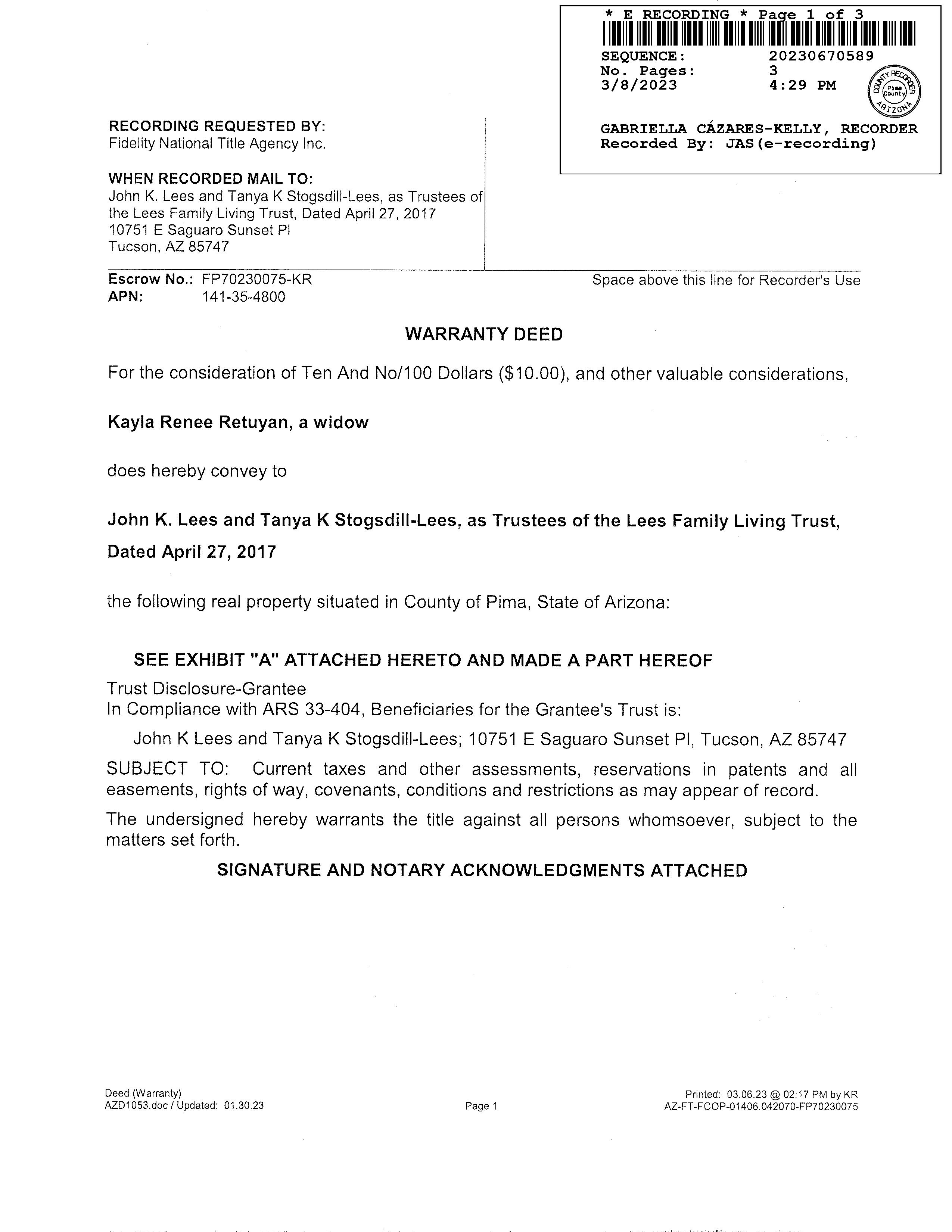 Owner Name : Lees Family Living Trust / Stogsdill-lees Tanya K