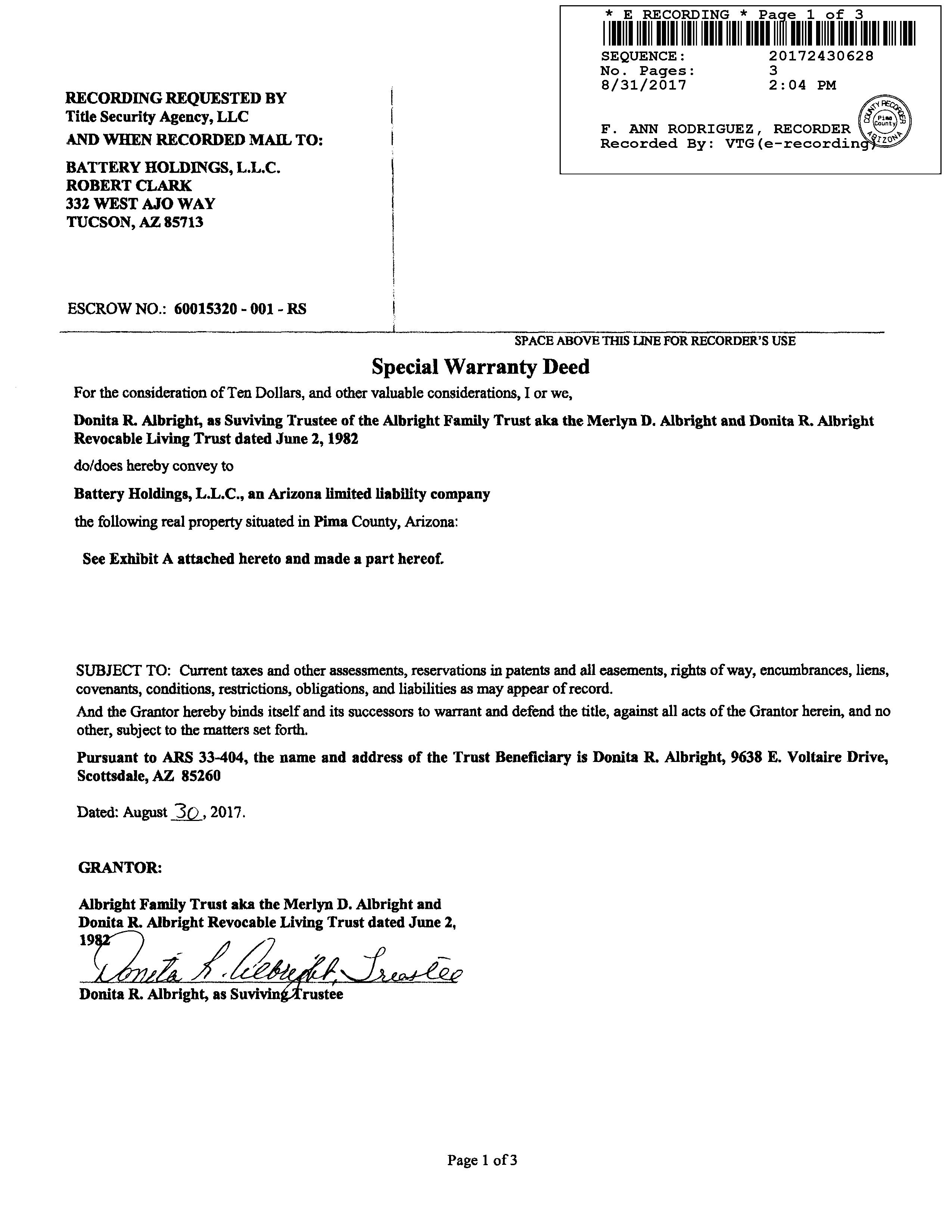 Owner Name: Battery Holdings Llc / APN / Alternate APN: 107-14-1960 / Deed Type: Special Warranty Deed