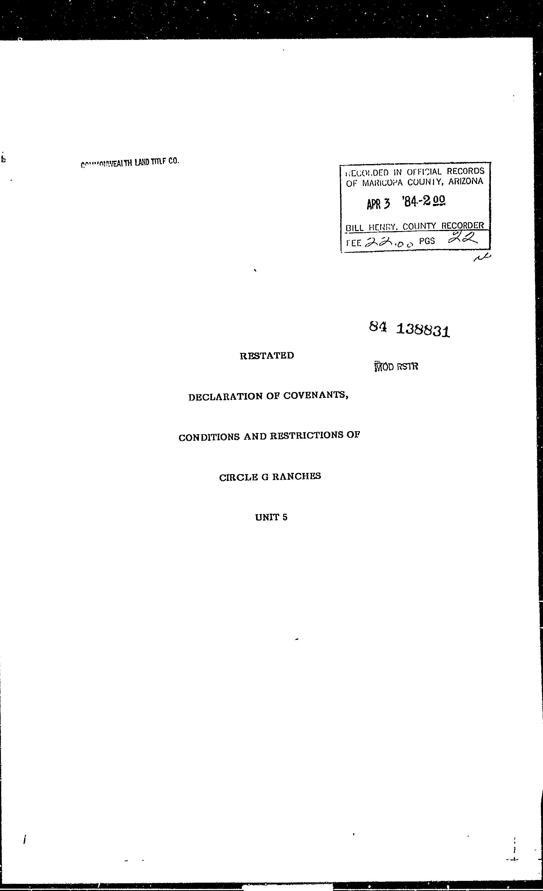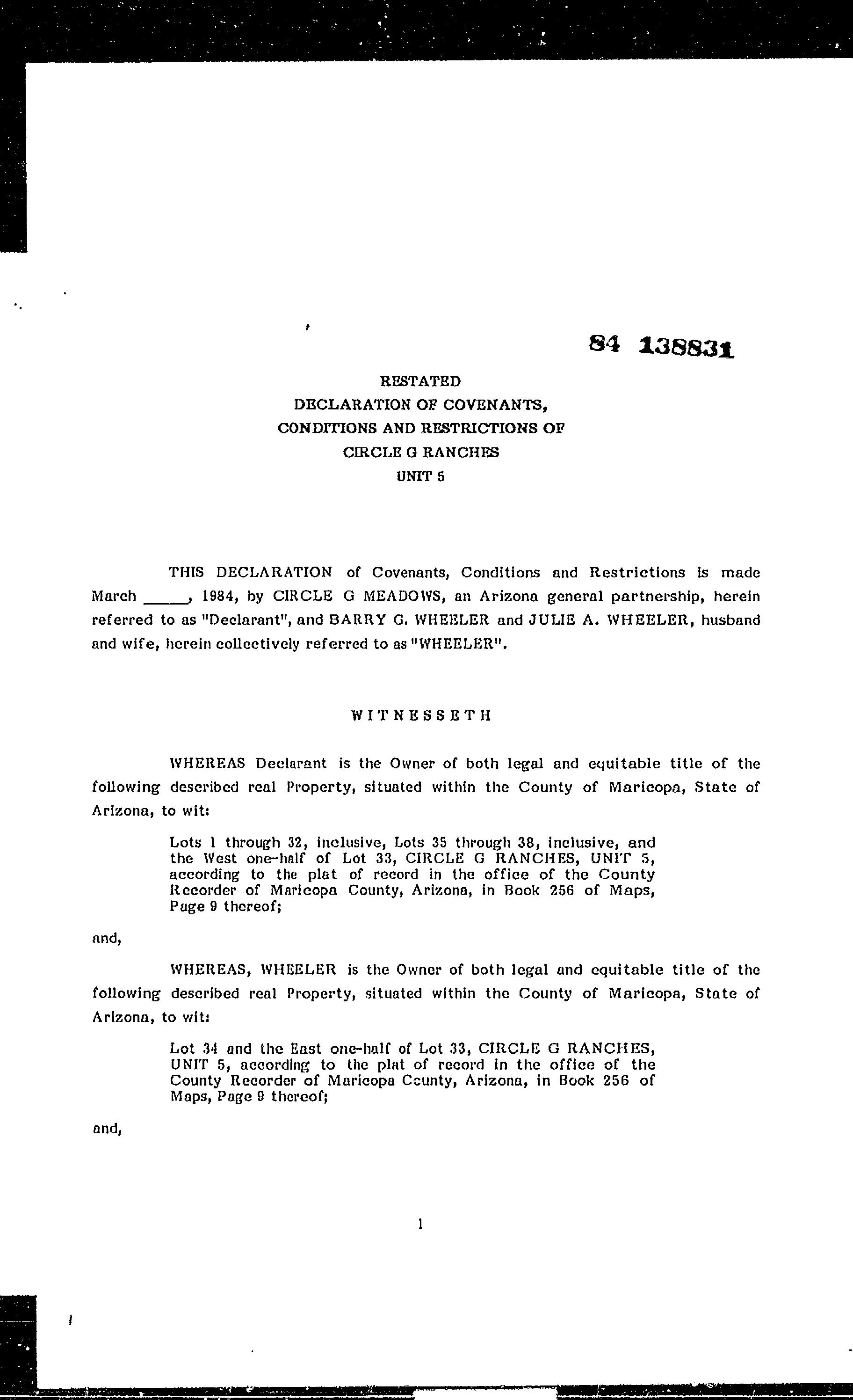 MARICOPA, AZ Document:RES 1984.138831 Page:1 of 22 Printed on:8/15/2023 2:41 PM Branch :FC0 User :JSTI