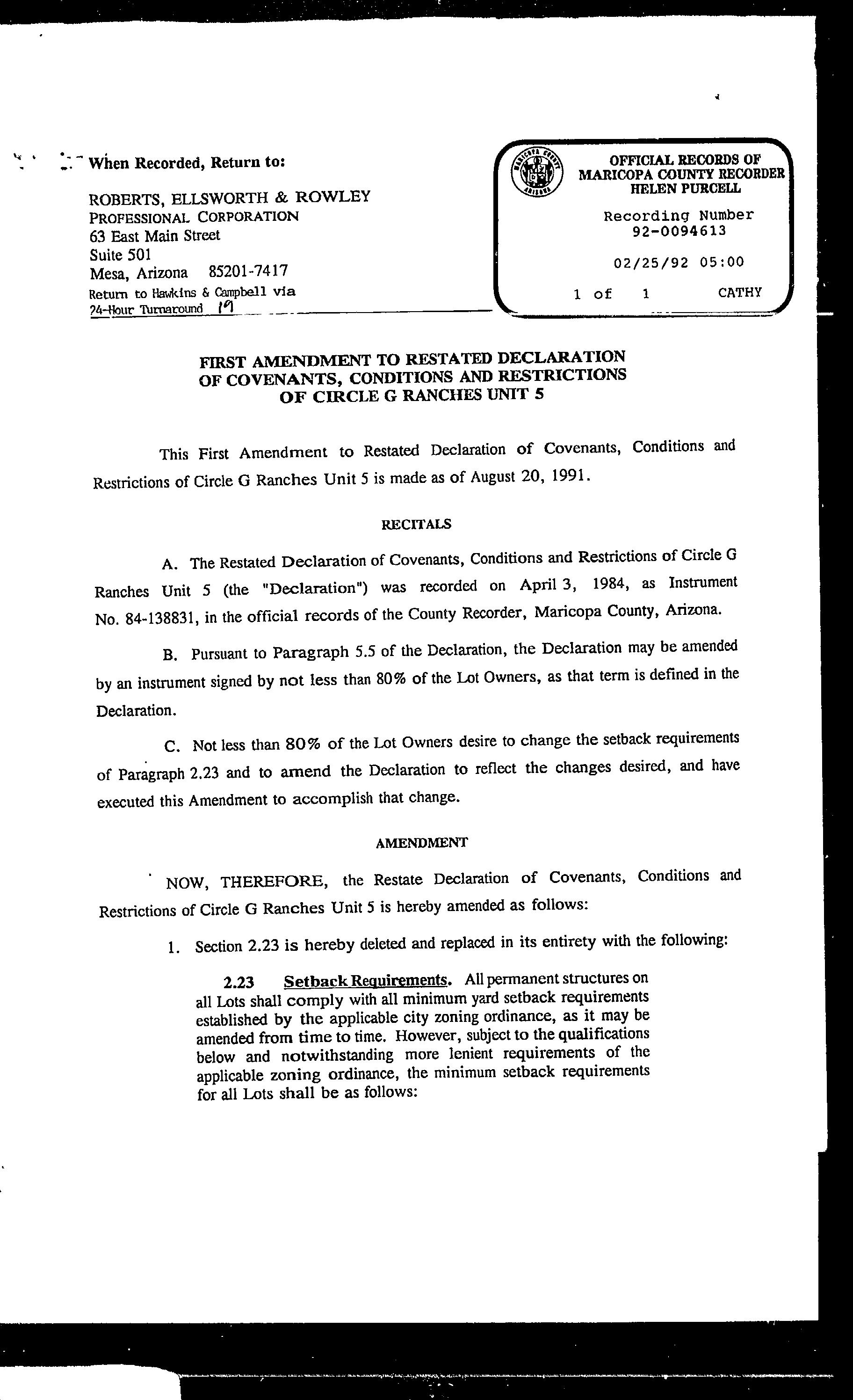 MARICOPA, AZ Document:RES 1992.94613 Page:5 of 19 Printed on:8/15/2023 2:41 PM Branch :FC0 User :JSTI