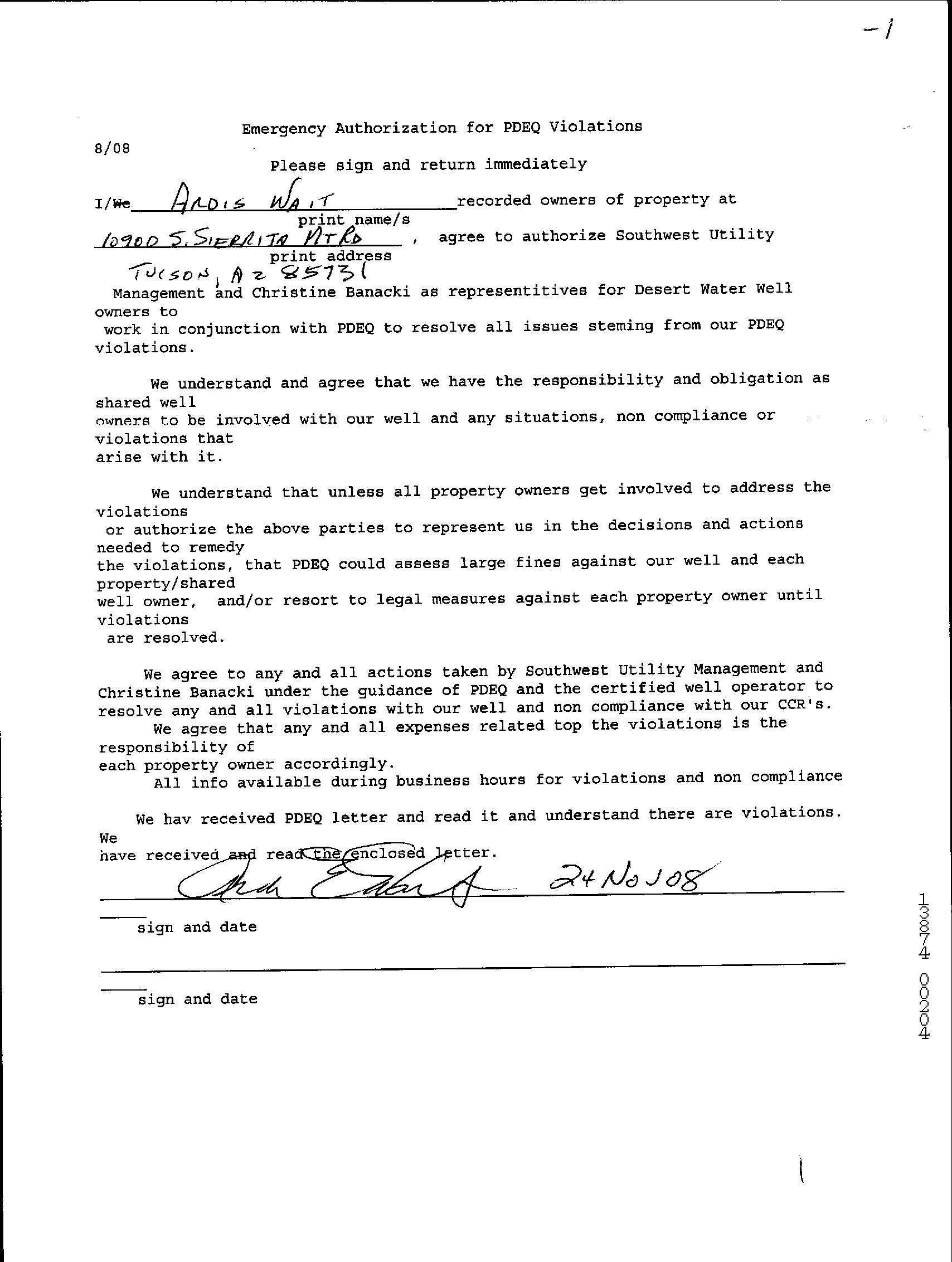 Owner Name : Wait Ardis E