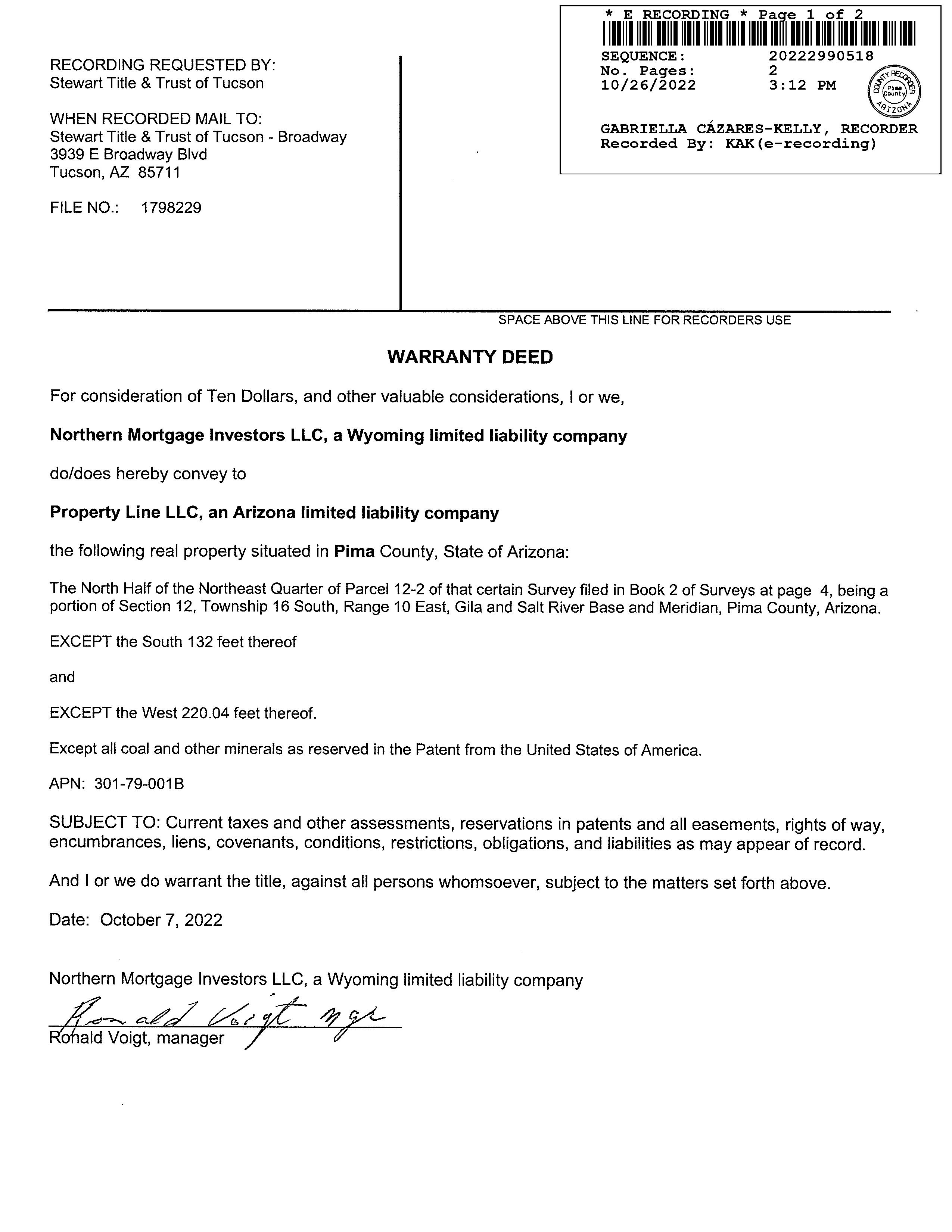 Owner Name: Property Line Llc / APN / Alternate APN: 301-79-001B / Deed Type: Warranty Deed