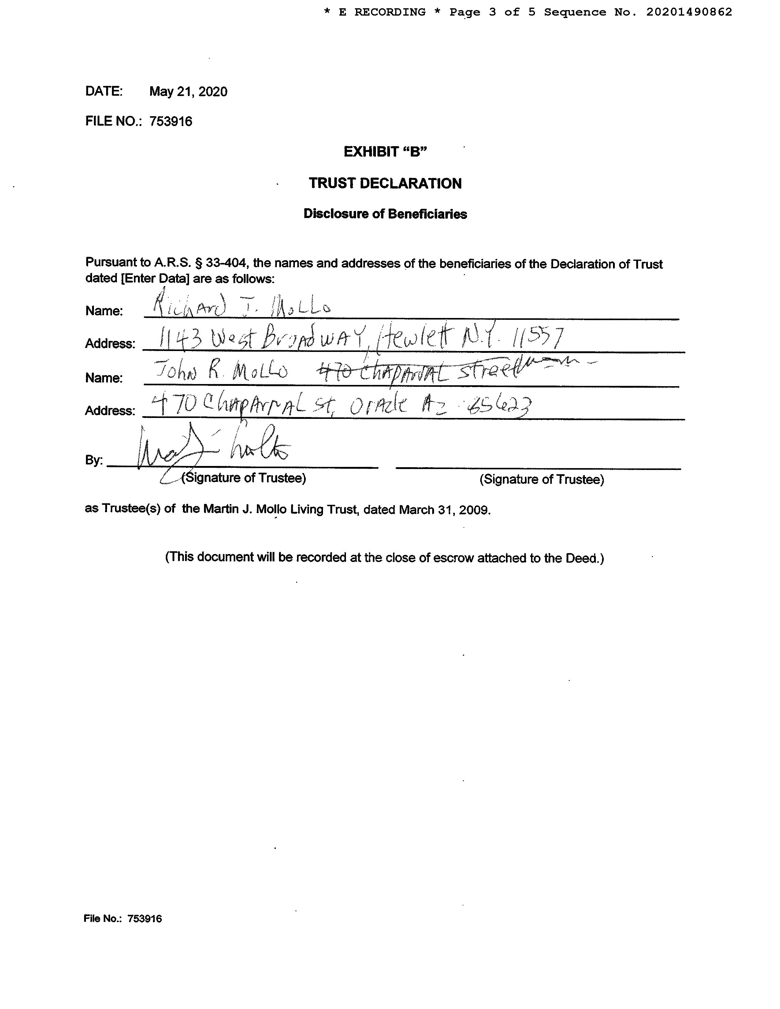 Seller Name : Martin J Mollo Living Tru