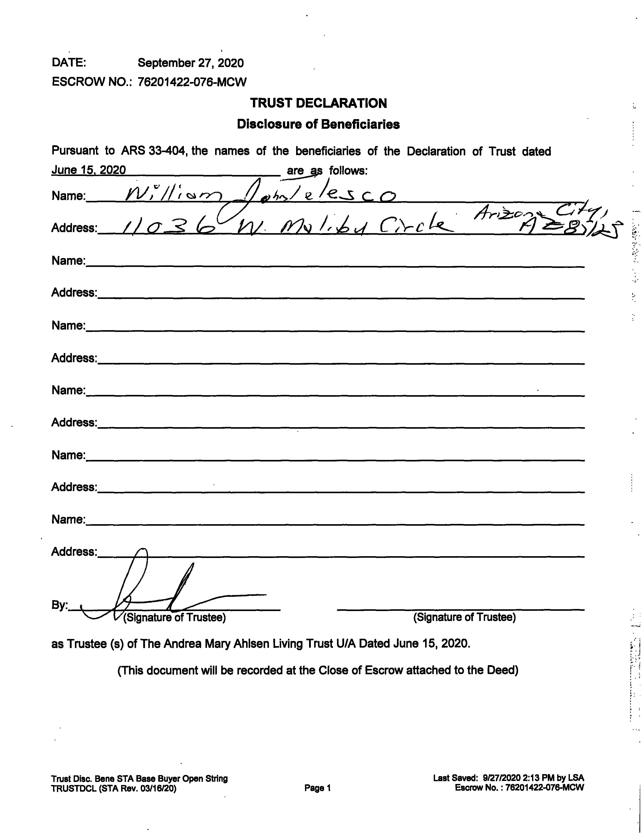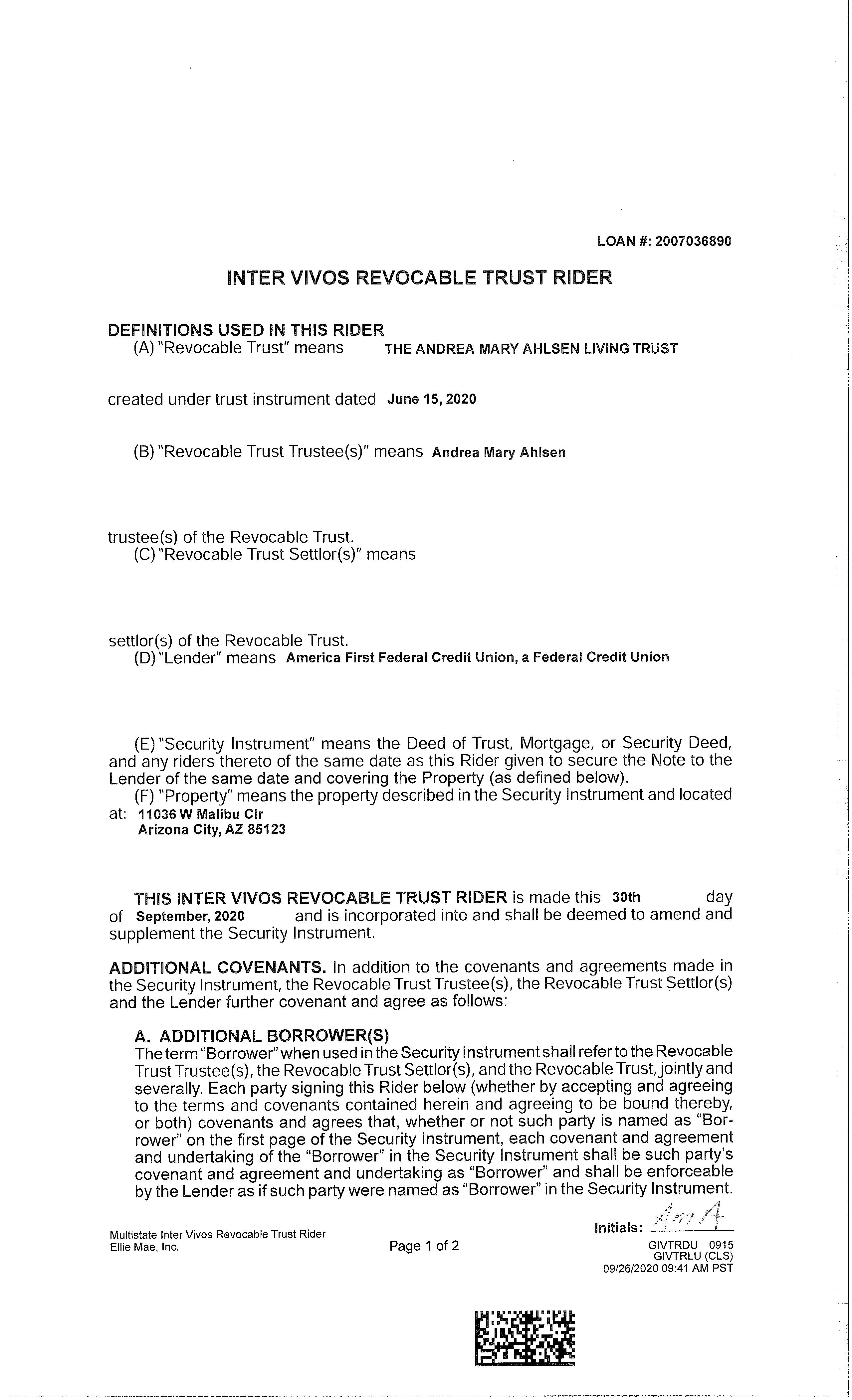 33 Post-policy Living Trust coverage