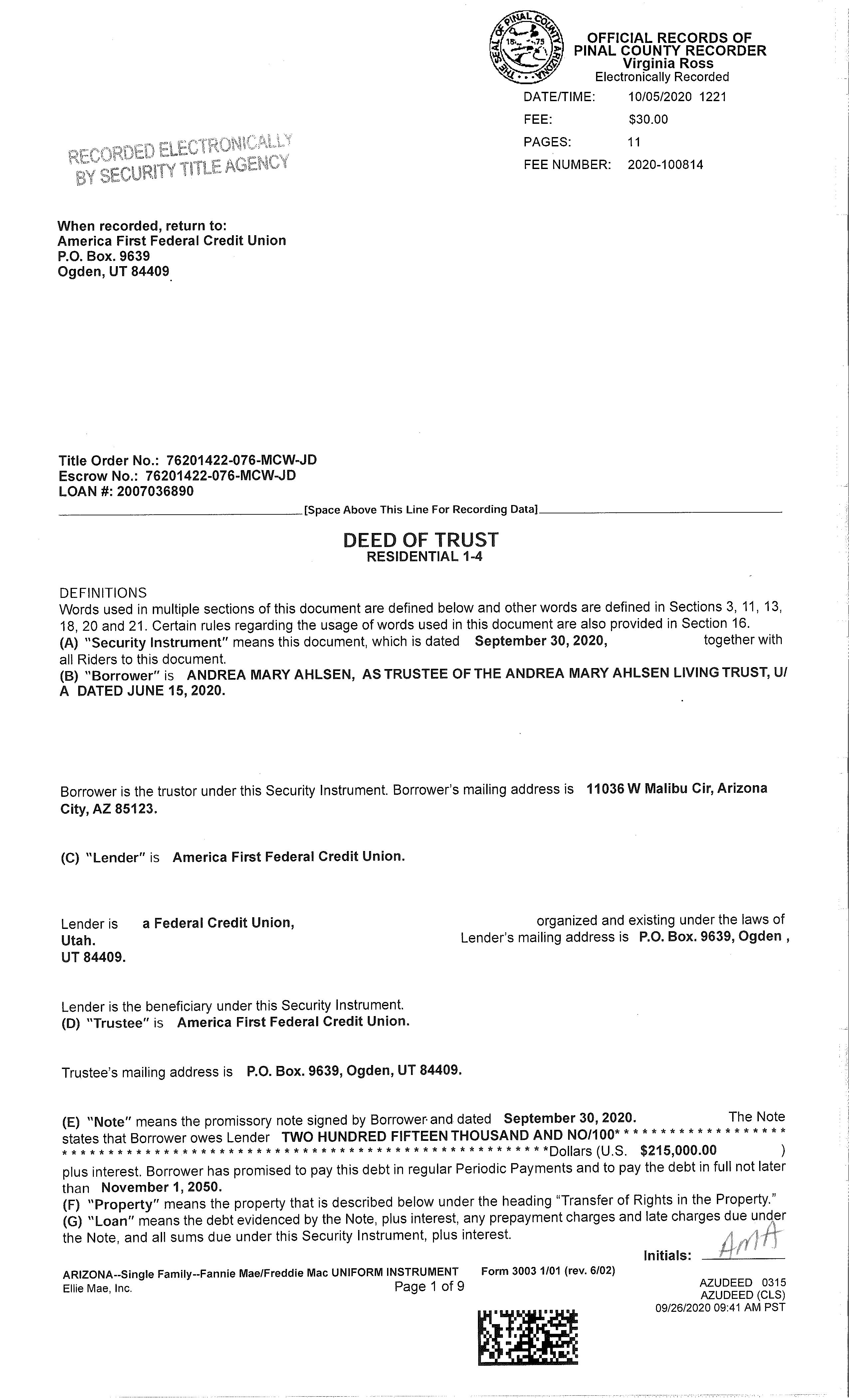 SITUS: 11036 W MALIBU CIR ARIZONA CITY