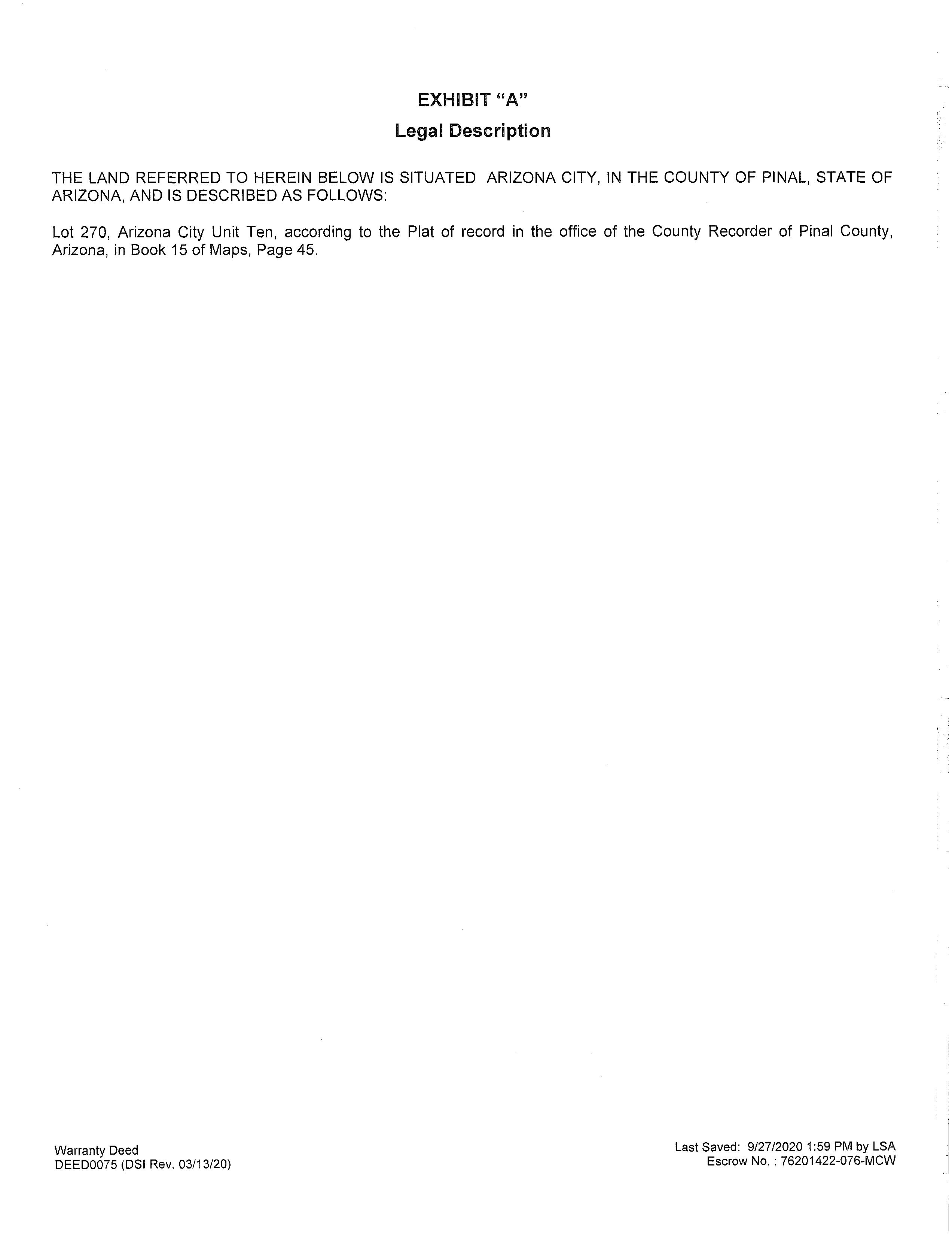 LEGAL: ARIZONA CITY #10 LOT 270