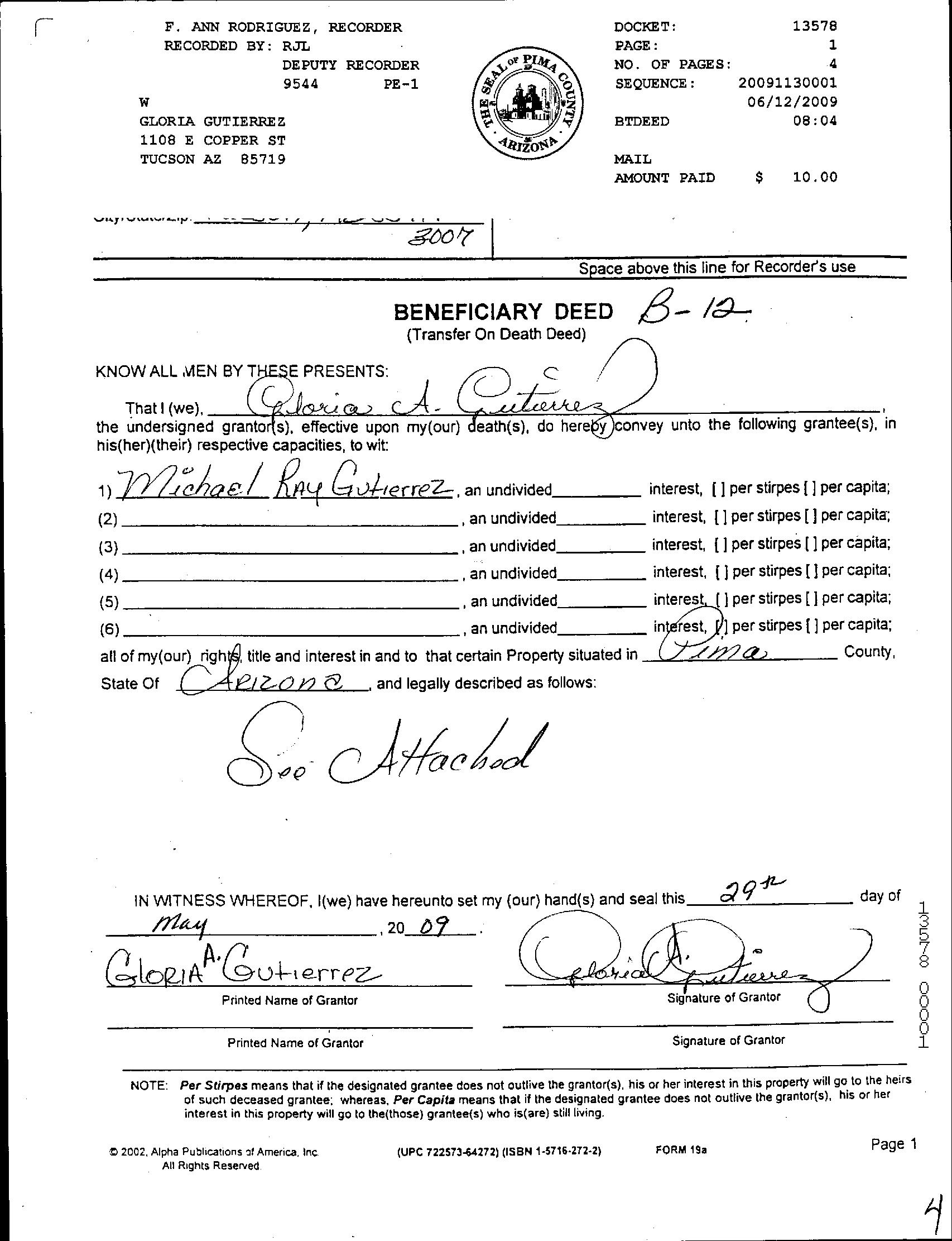 Mailing Address : 1108 E Copper St, Tucson AZ 85719-3007 C022