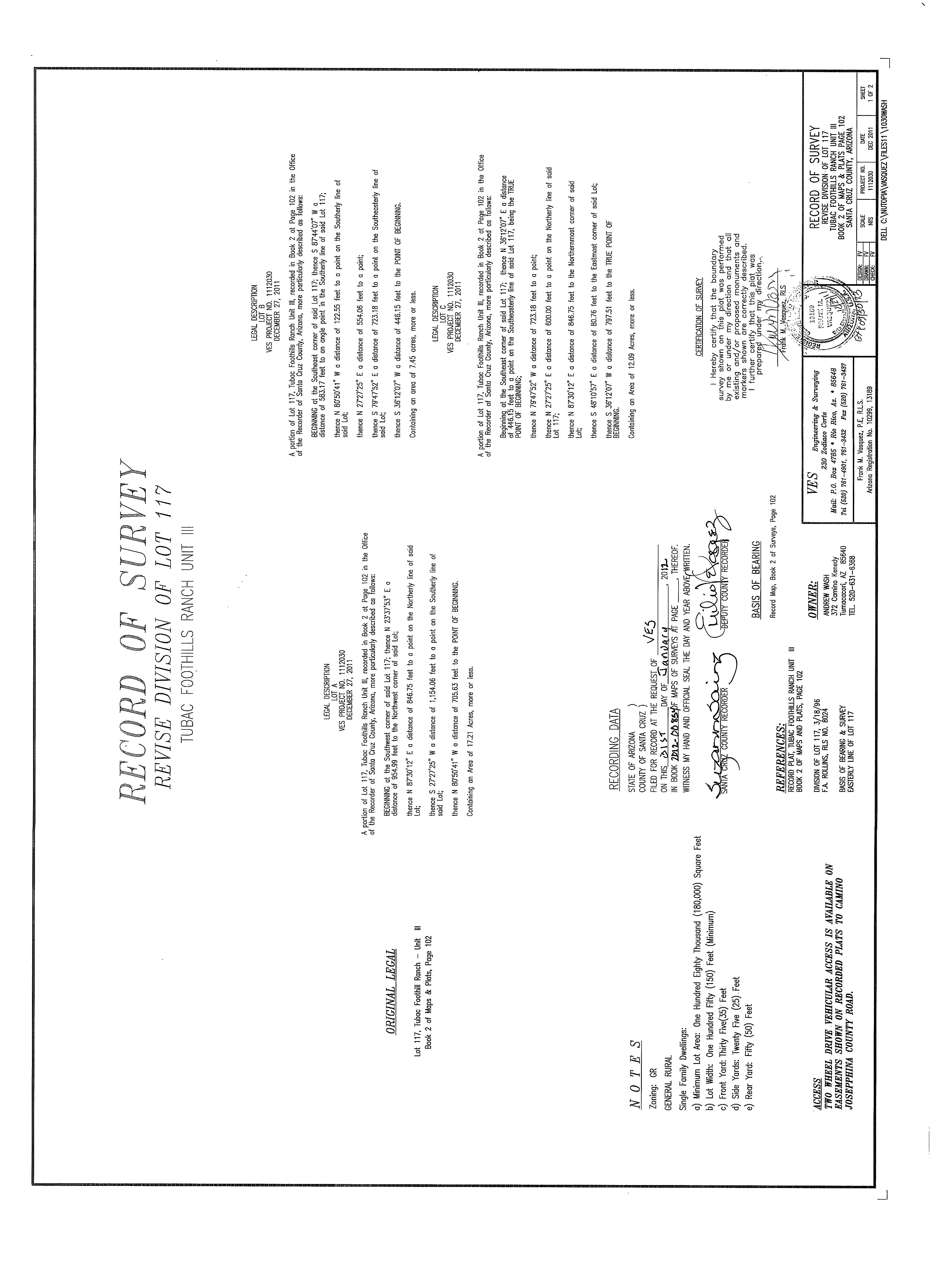 Legal Description : Sub Tubac Foothills Ranch Unit No.3 A Portion Of Lot 117 Aka: Lot 117b