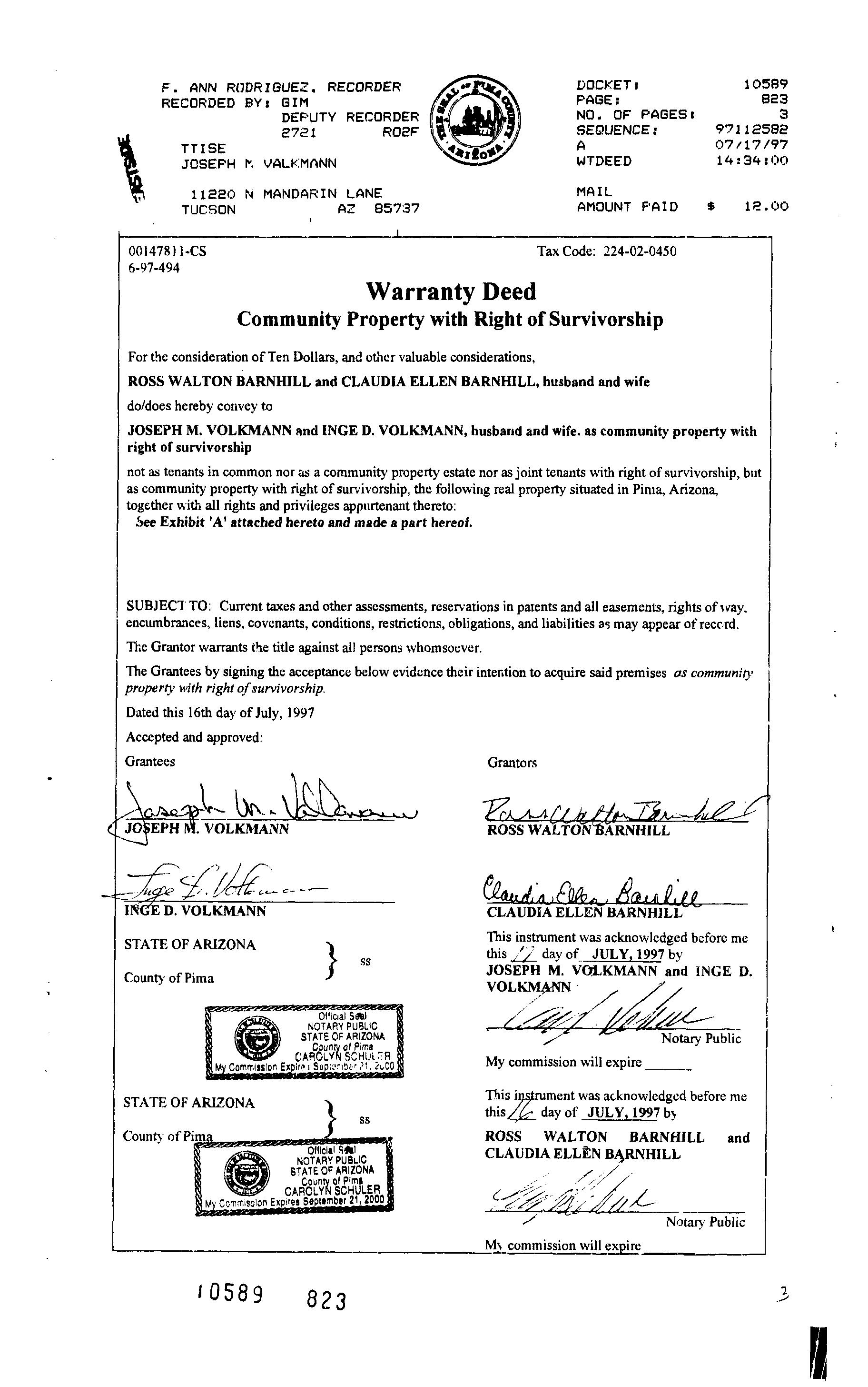 Prior Rec/Sale Date : 12/14/1988 / 12/14/1988