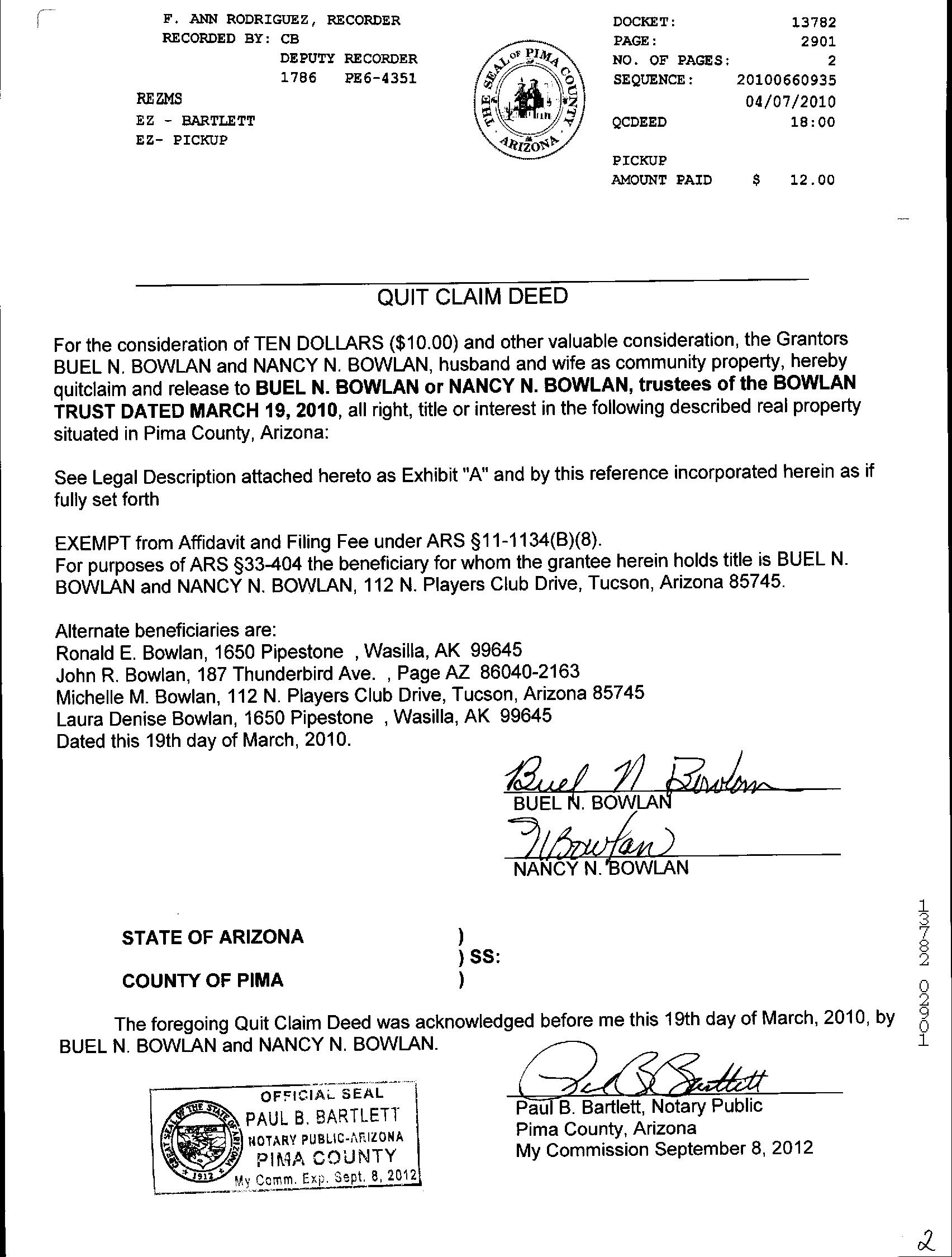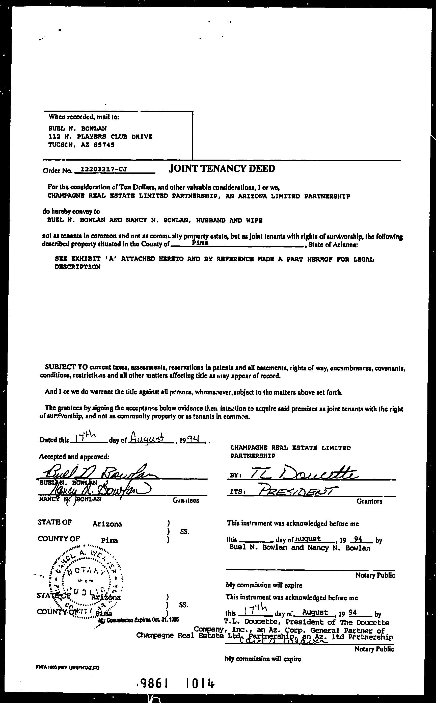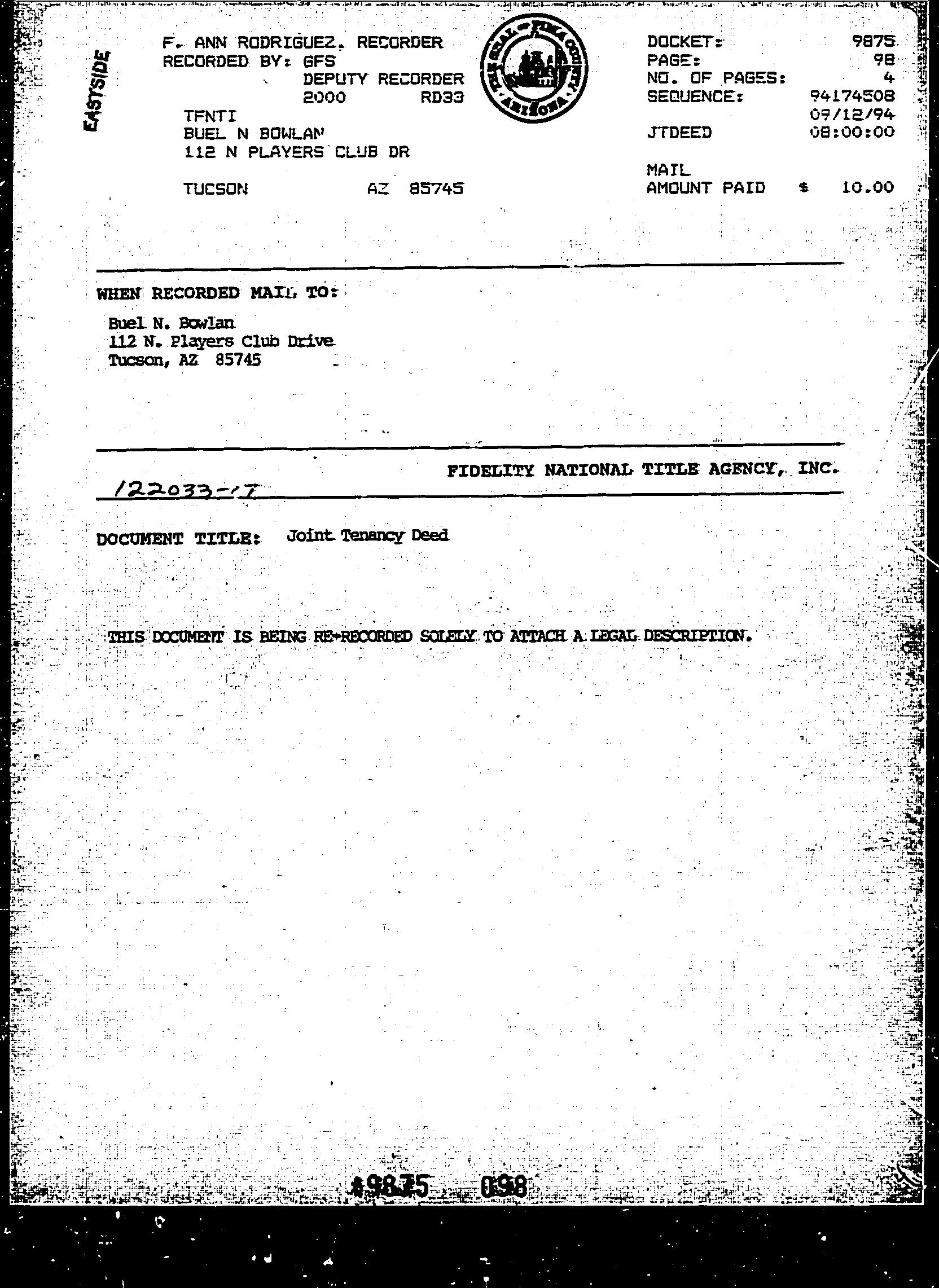 Mailing Address : 112 N Players Club Dr, Tucson AZ 85745-8916 R080