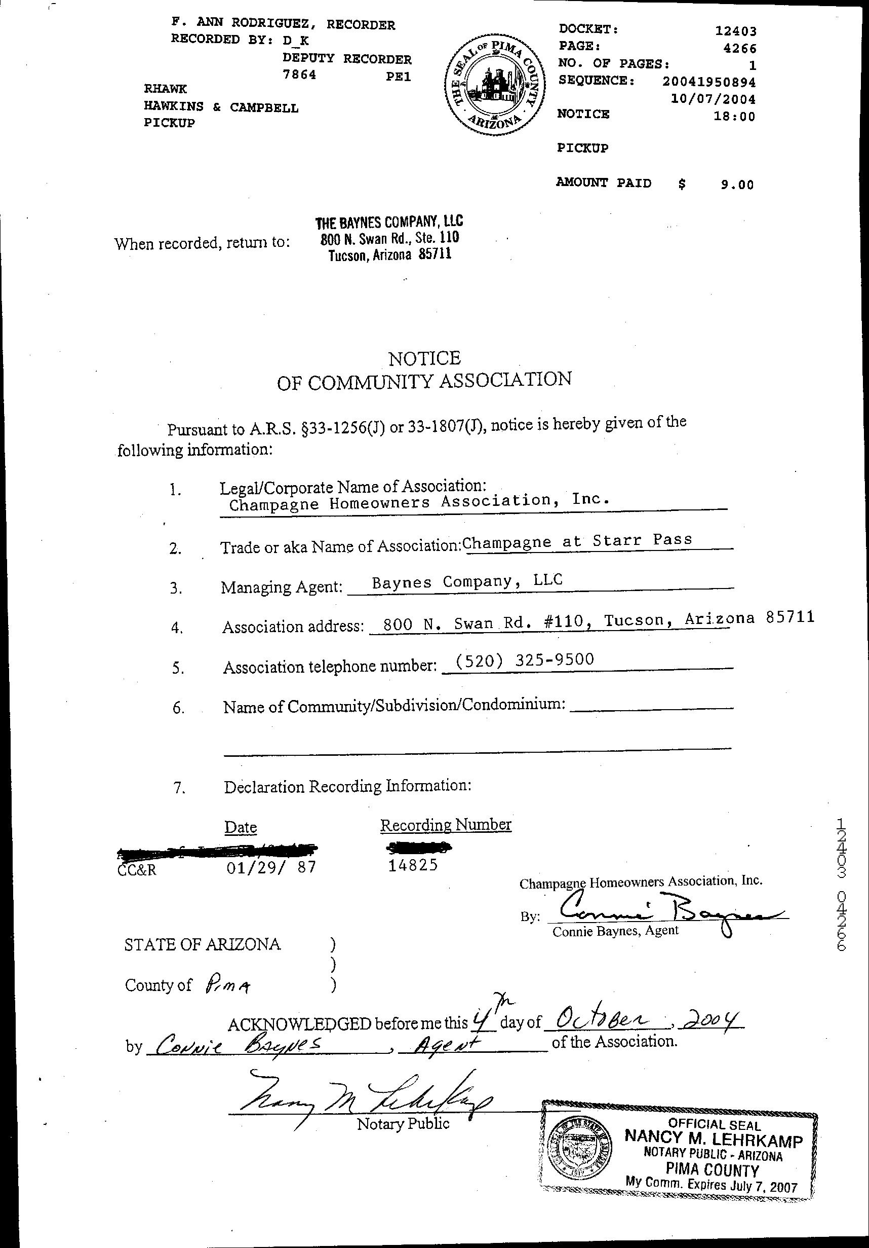 Owner Name : Kinn Belinda Subdivision : Champagne Starpass