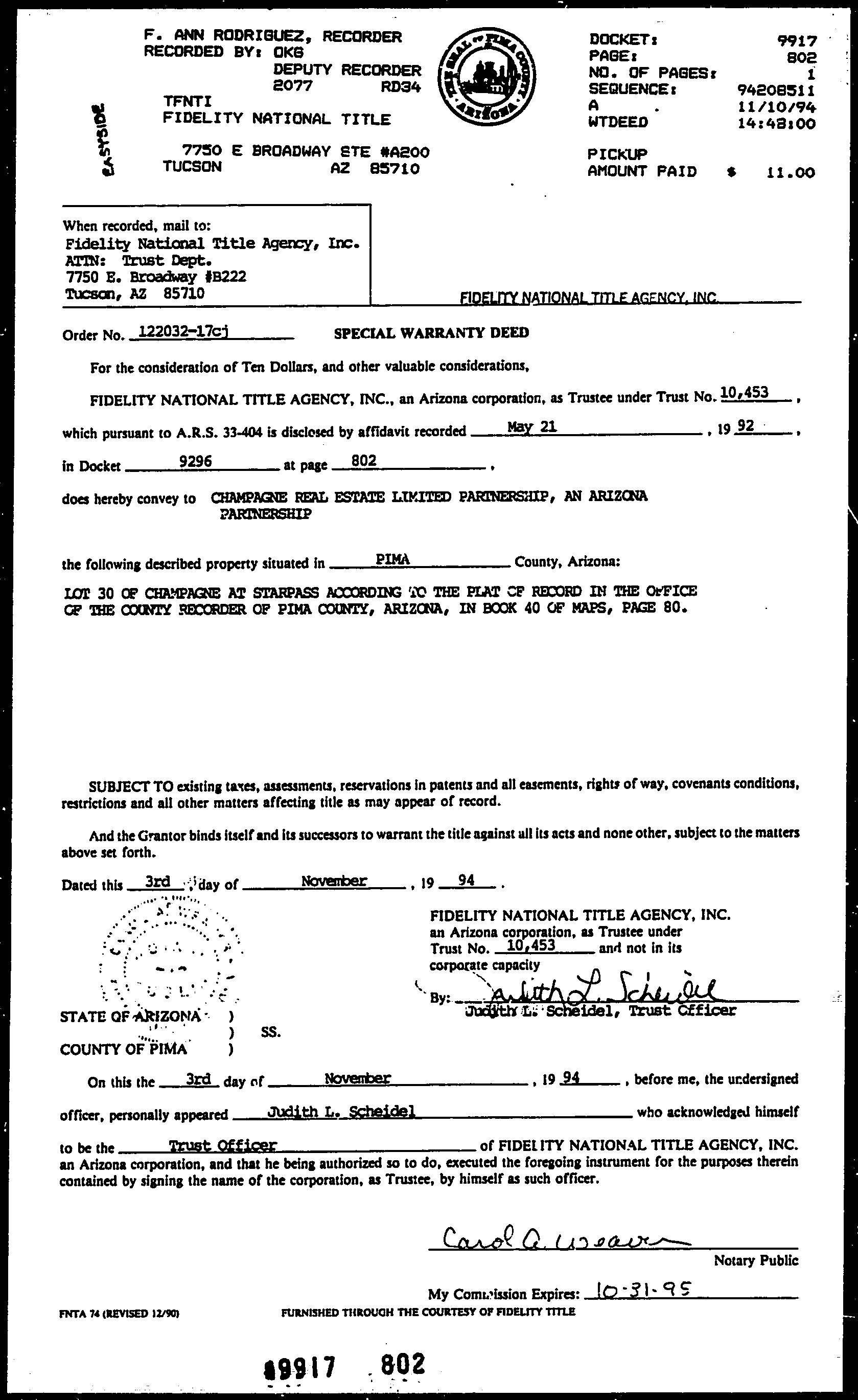/ Alternate APN: 116-11-1090 / Deed Type: Warranty Deed