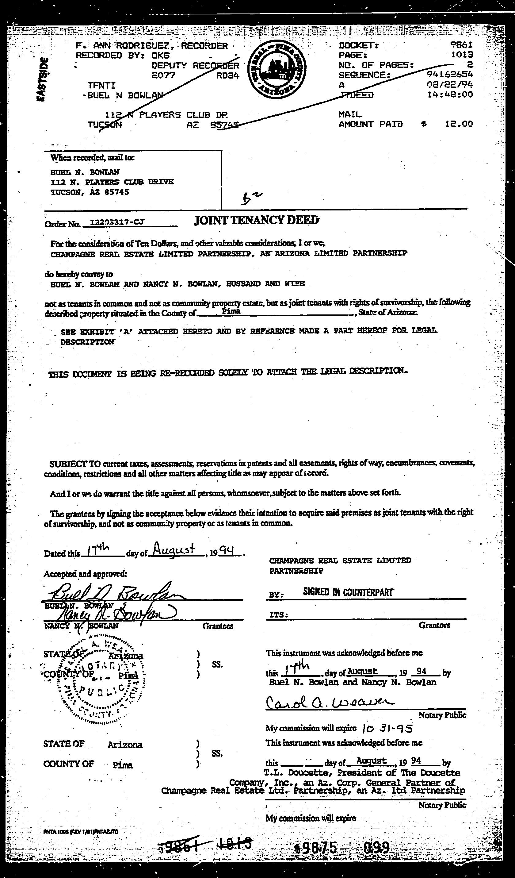 Owner Name : Edwards Robert T Subdivision : Champagne Starpass